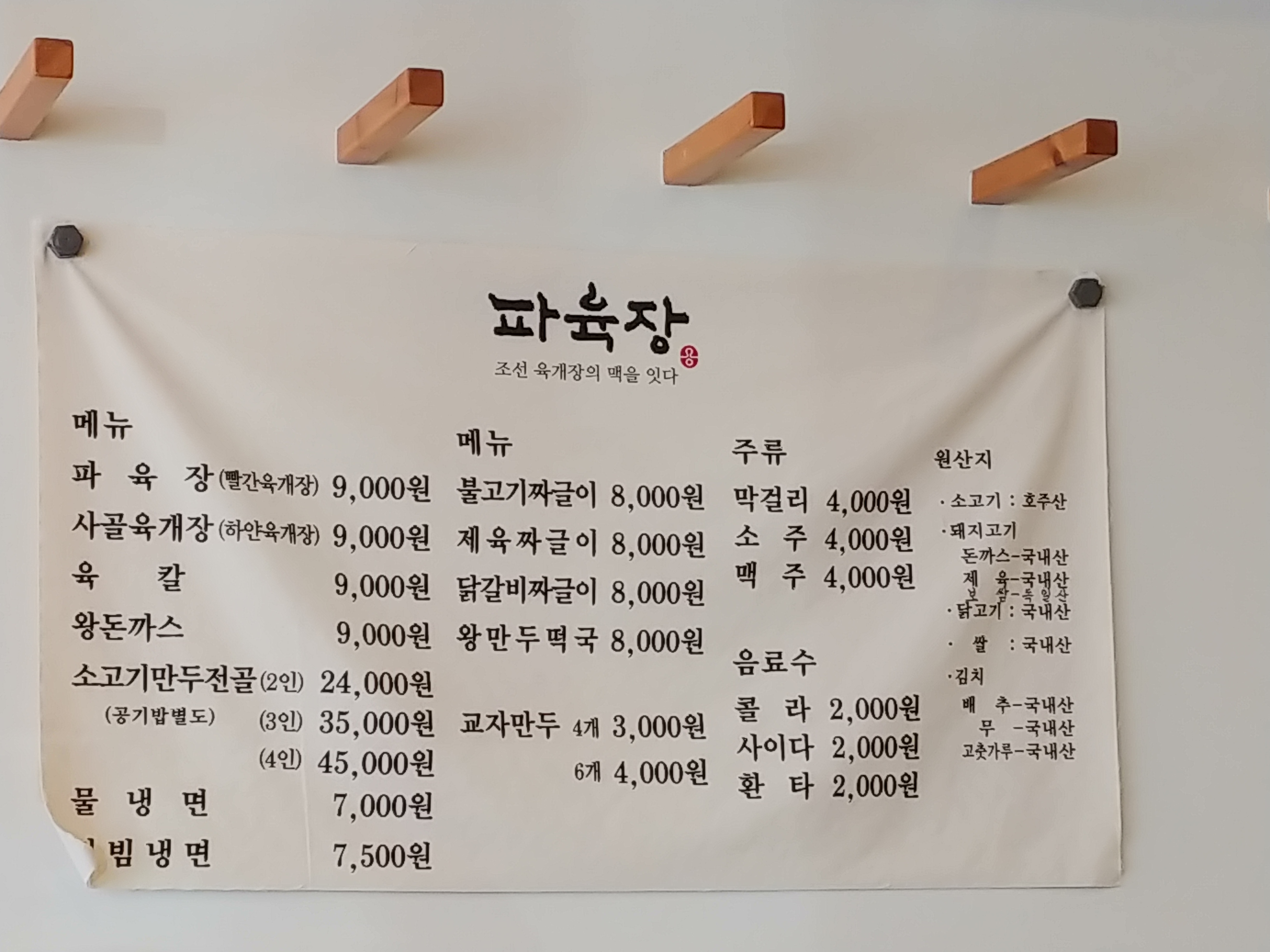 주메뉴인 파육장(빨간육개장,매운맛) 사골육개장(하얀육개장,안매워요) 9000원