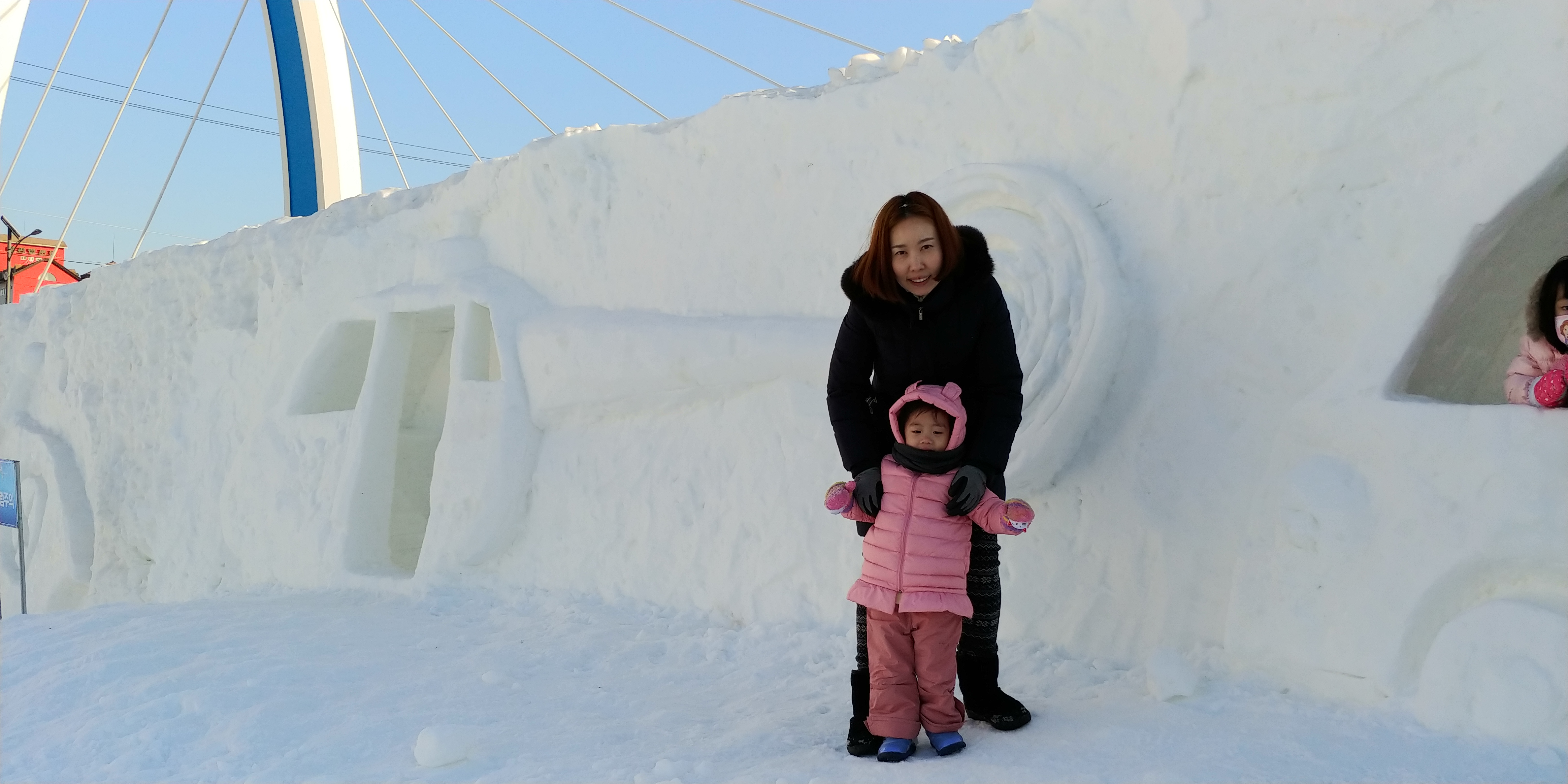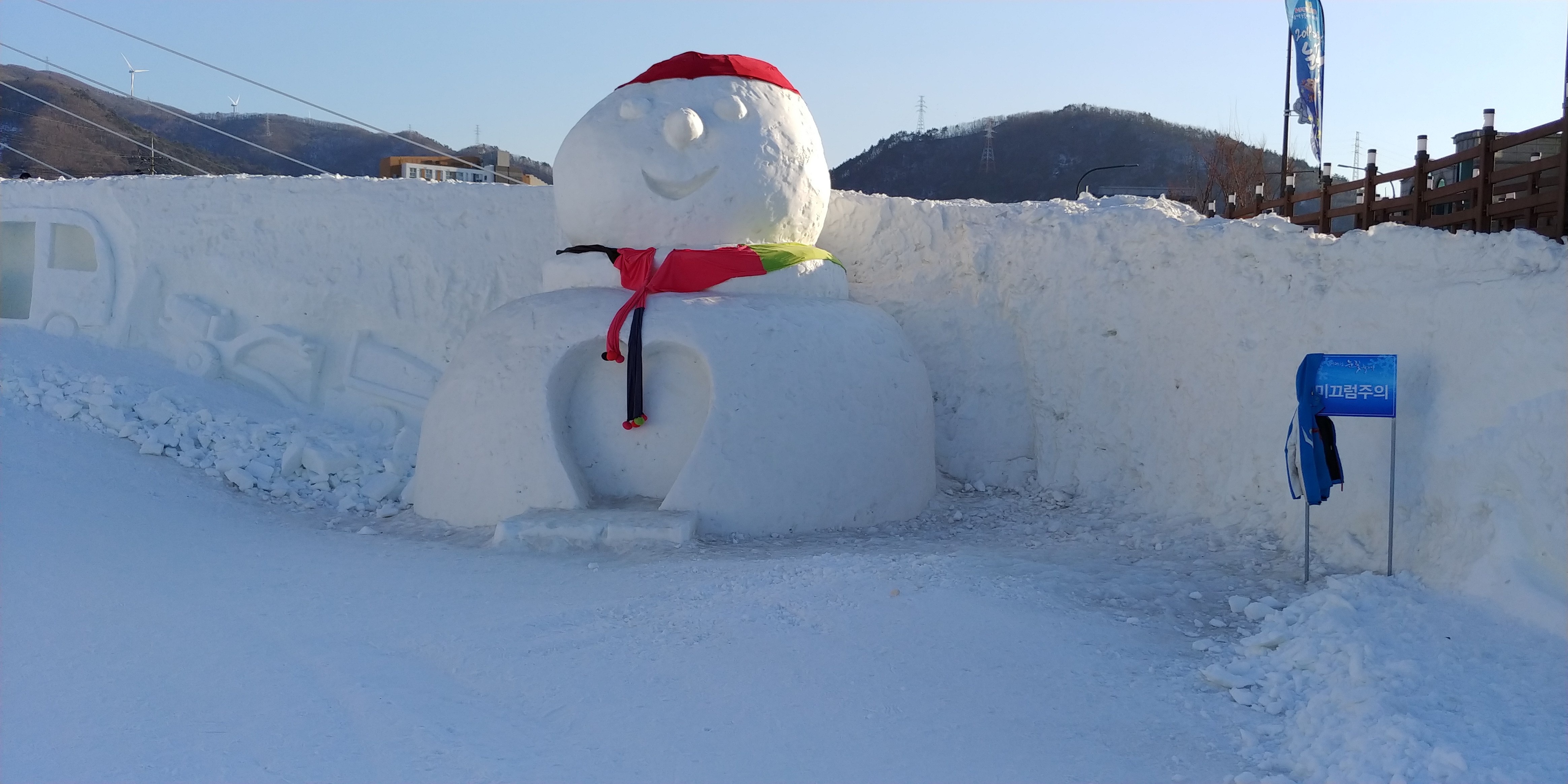 눈조각 중심의 볼거리가 가득하고 눈썰매체험과 놀이가 있는 눈테마파크을 꾸며놓은거라는데