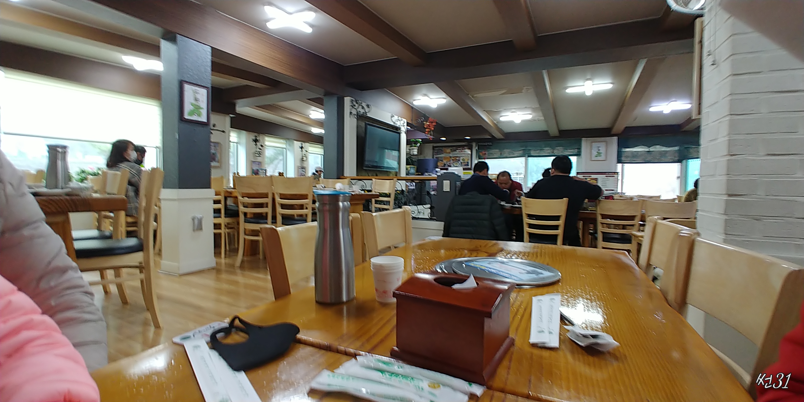 사진에 보시는봐와 같이 그리 크지는 않은 내부이지만 나무식탁으로