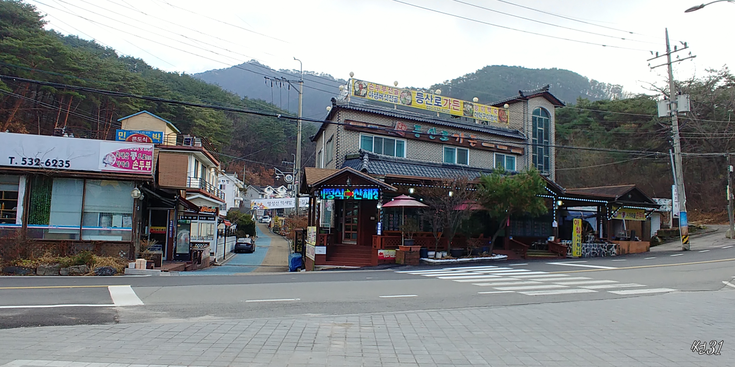 큰길 기준으로 왼쪽 오른쪽 다 음식점과 숙박업소가 있는데