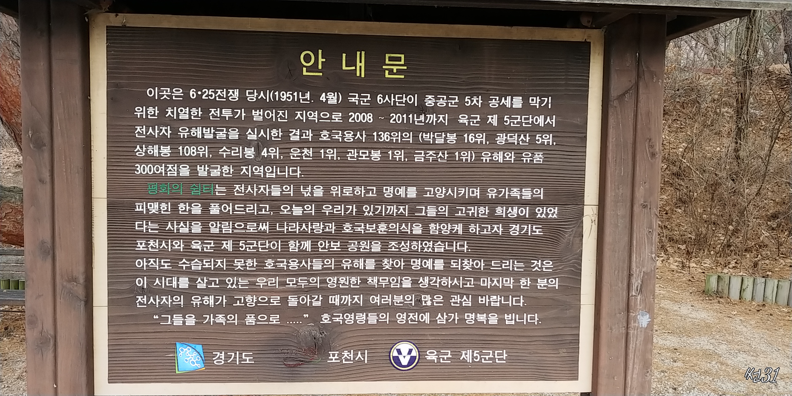 6.25당시 치열한 전투가 벌어진 지역으로 전사자들의 넋을 위로하고