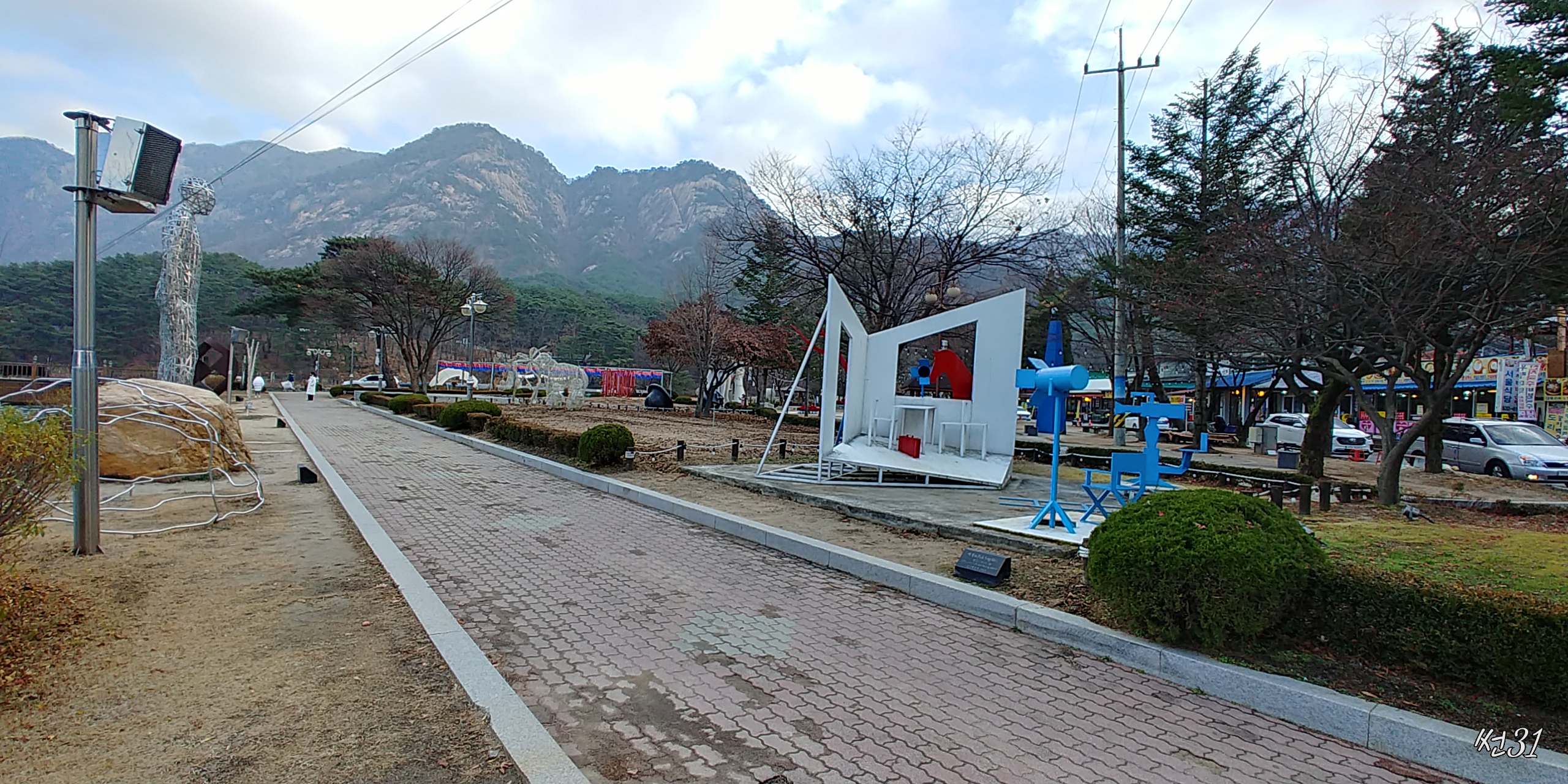 그안으로 더 들어가면 미니바이킹도 타고 작은 놀이시설이 조금 있고 더들어가면 조각공원이라고 하긴엔 좀 허술하고 허전한데 여튼 작은 미니 공원이라고 하죠 그런 조각공원이 있습니다.