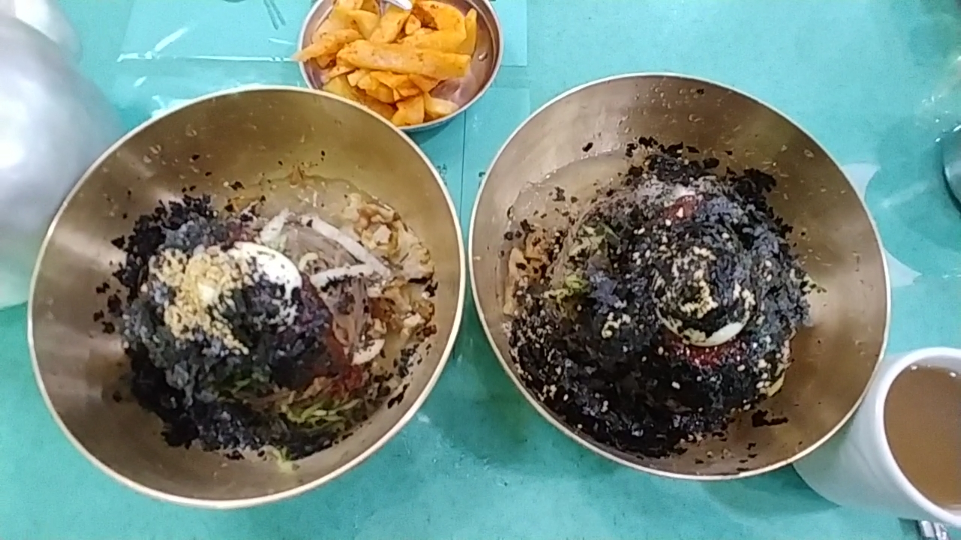 천서리막국수 비빌때 양념소스가 케찹통에 들어있는데