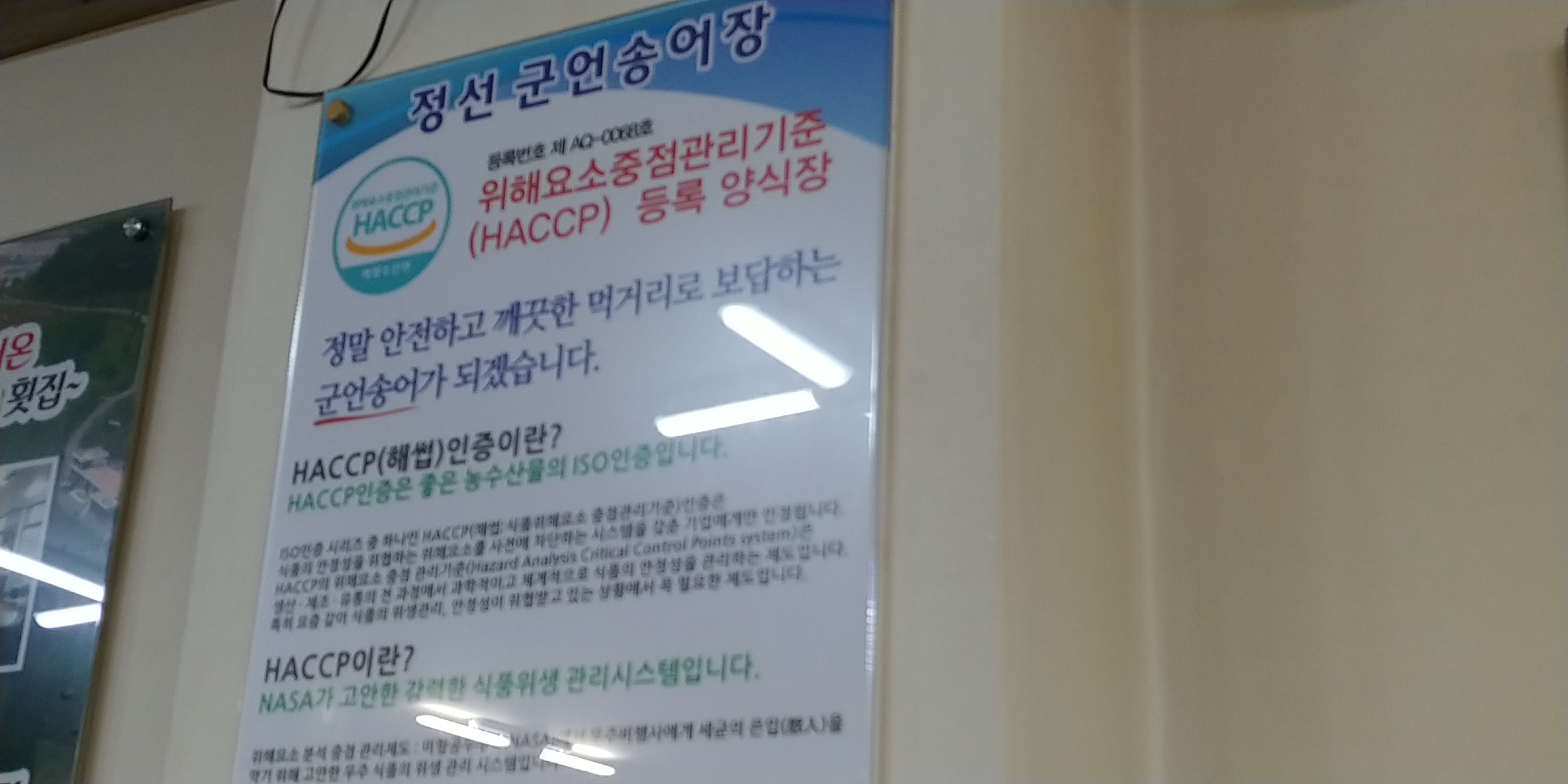 HACCP해썹 인증을 받았는데 좋은 농수산물의 ISO인증입니다.