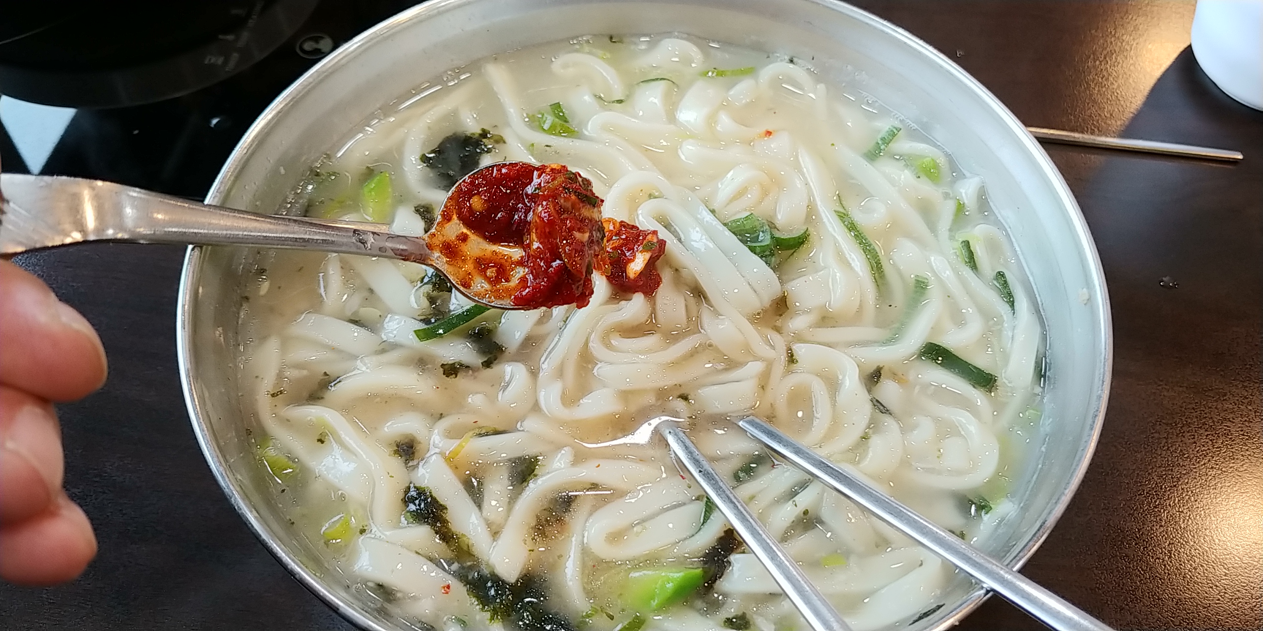 면발을 보시면 전통칼국수 느낌이 납니다.