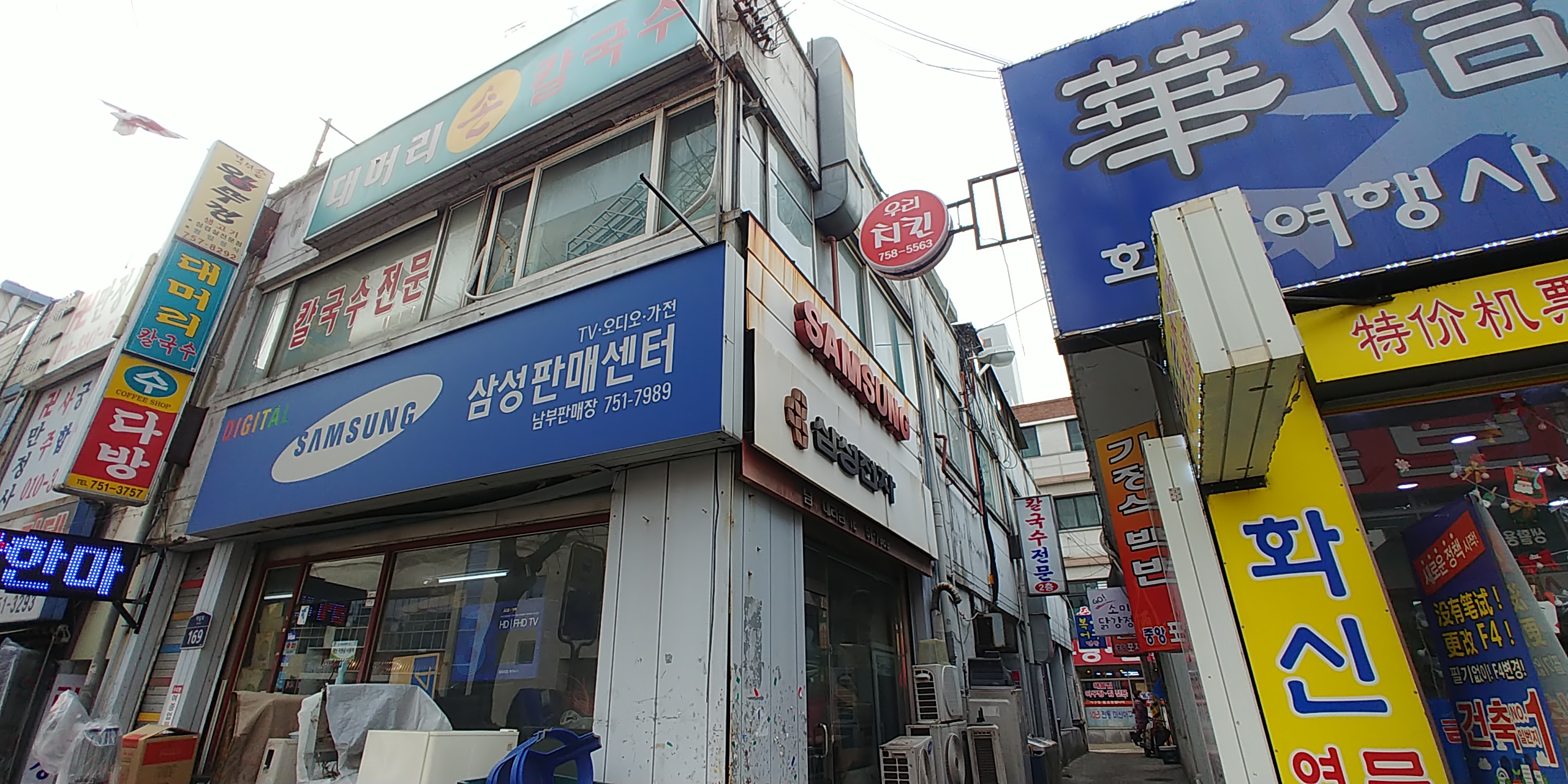 길가에 대머리칼국수라고 있고 삼성판매센터 옆 골목길로 들어오면