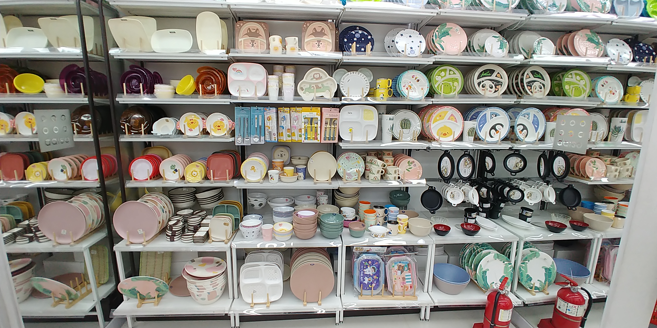 다알겠지만 가격들이 저렴하고 다이소 특유의 아기자기한 디자인들의 그릇,접시,잔이 있군요.