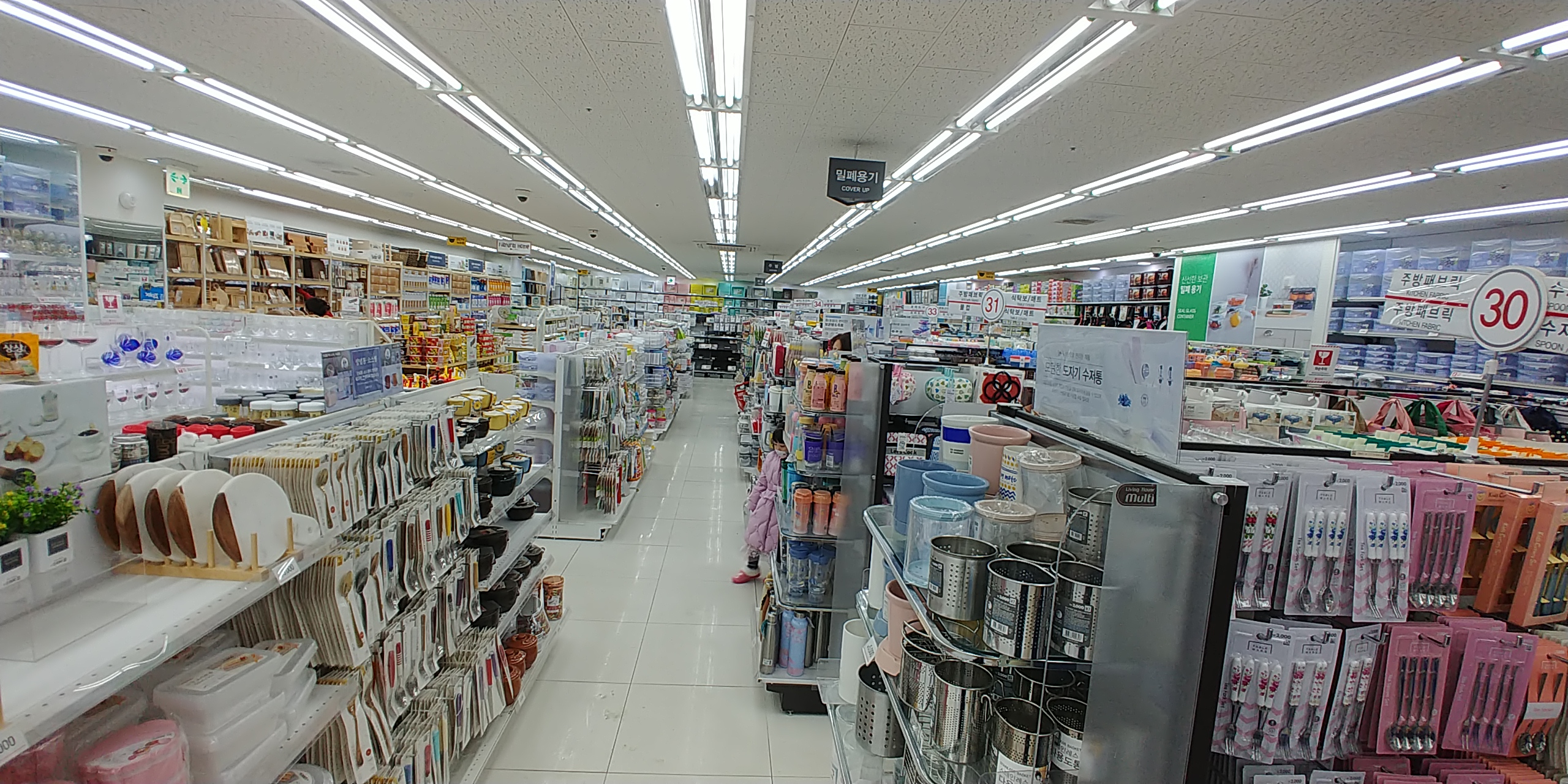 내부전경인데 트별한것은 없고 다이소 특유의 형광등을 온천장에 쭉 이어서 붙여놓은것이 눈에 띄고요 물건이 이리저리 있어서(저희가 첨가서 잘 못찾아서 그런가) 찾기가 좀 헷갈리게 되있었습니다. 그리고 매장이 좀 작다보니 칸칸이 물건종류별로 완전히 분리된게 아니라 선반 절반정도에서 다른물건하고 섞이기도 하고 그렇군요.