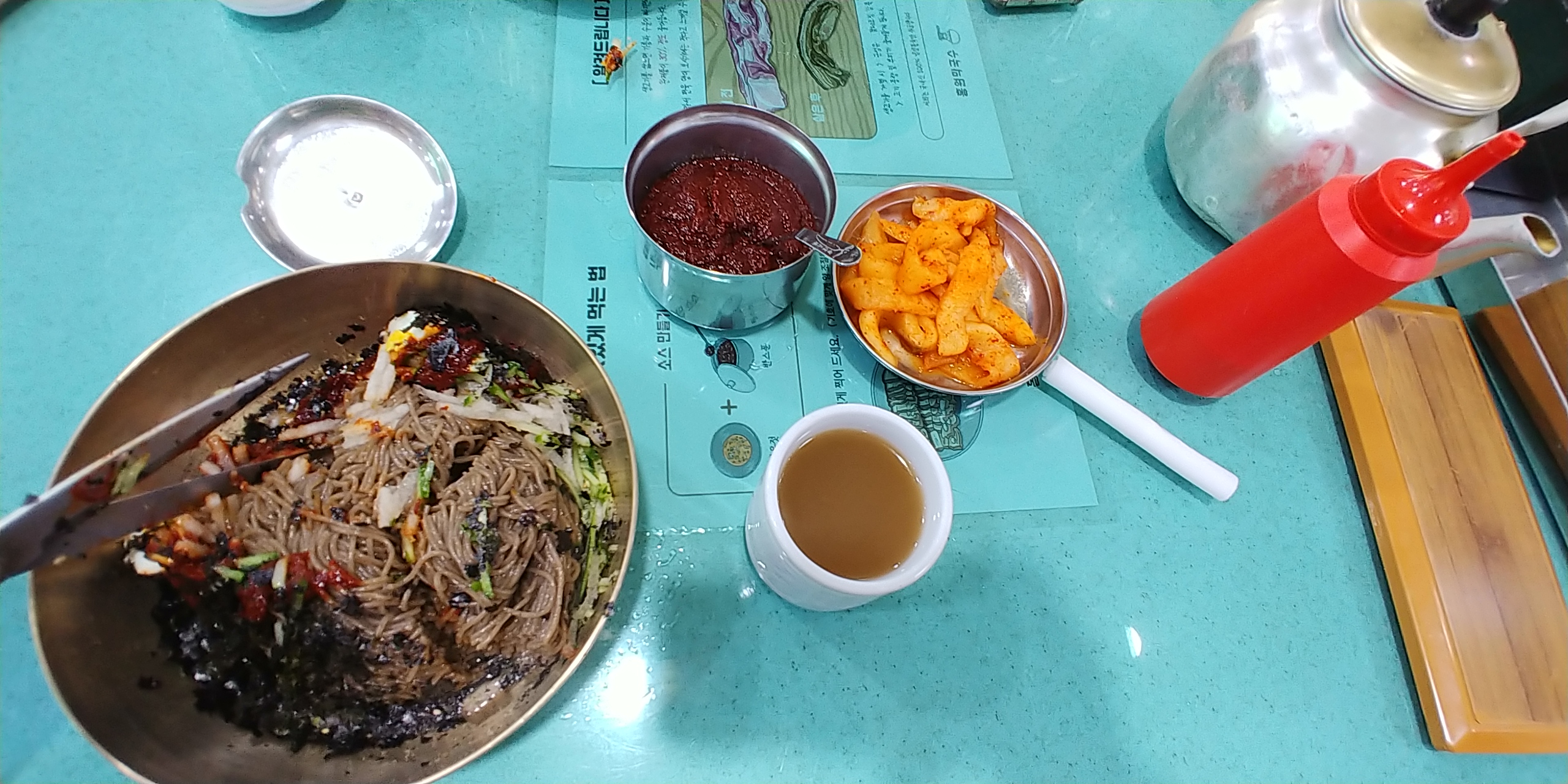 가격이 곱빼기9000원짜리 막국수를 먹는데 무우무침 하나라서 아쉽네요.