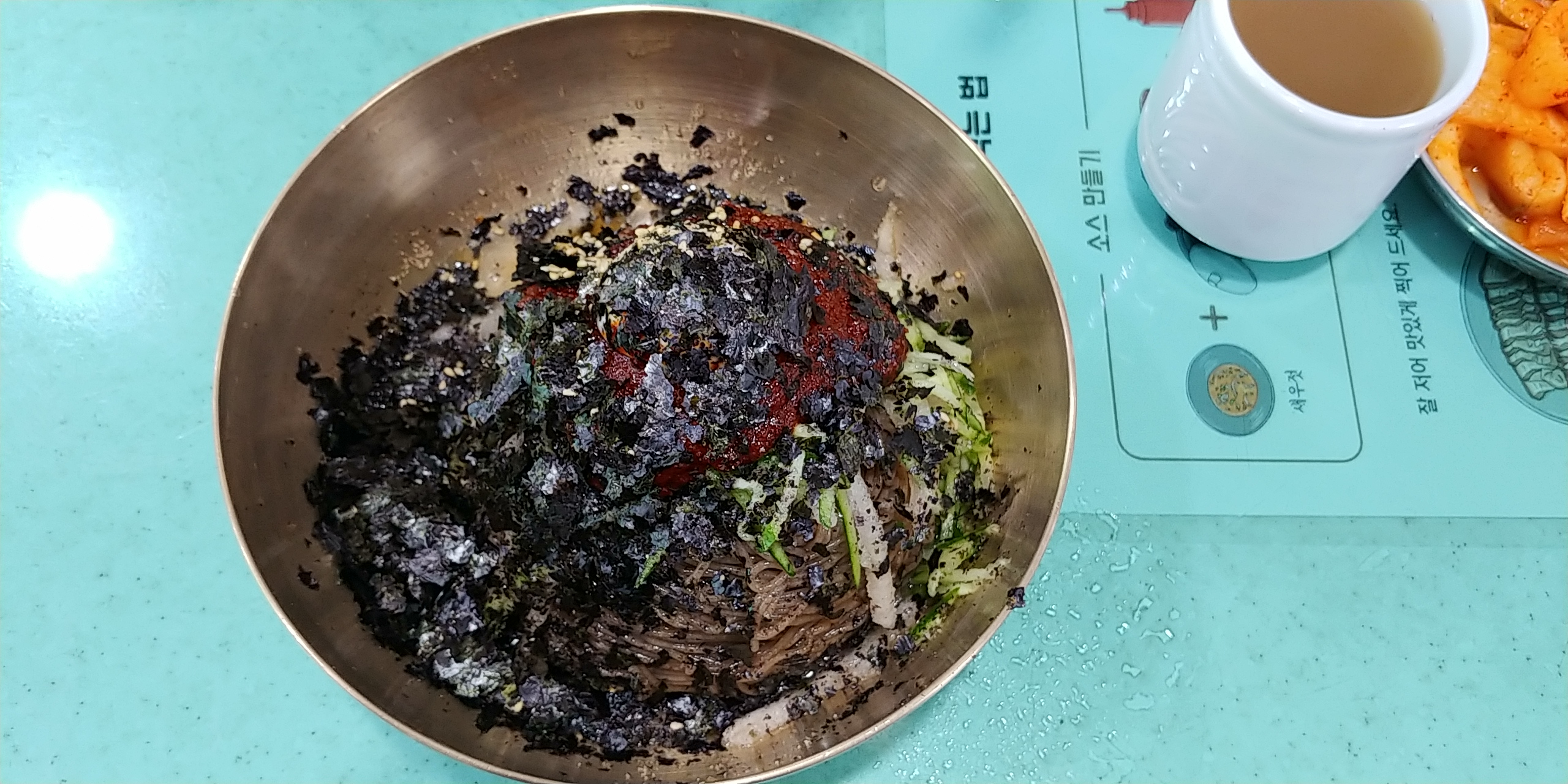 양념장이 식탁에 세팅되어있는데 너무 많이 넣으면 맵고 짜기때문에