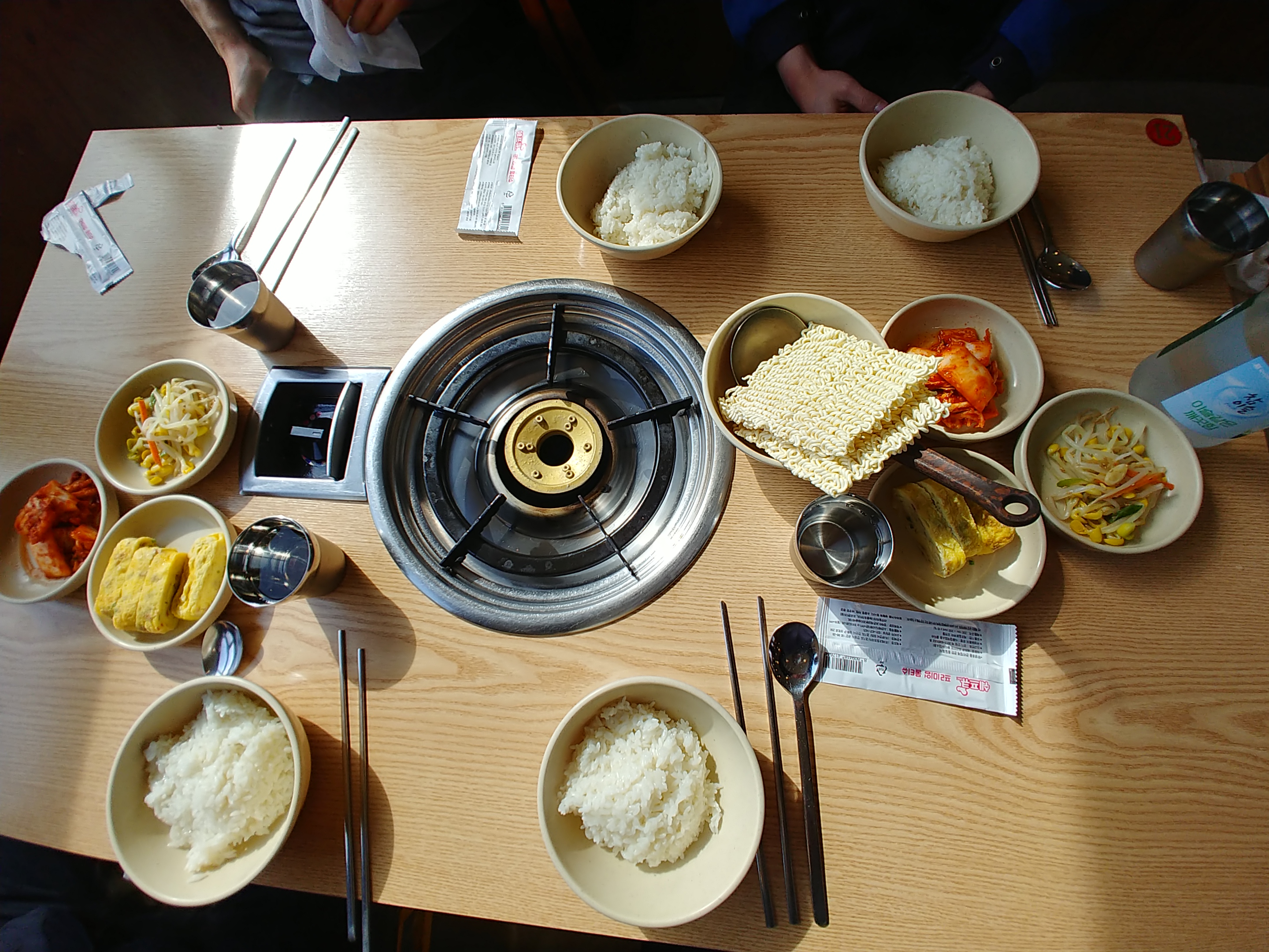 가져다가 드시면 되는데 라면사리 무한리필,그냥 밑반찬 콩나물,김치 셀프리필