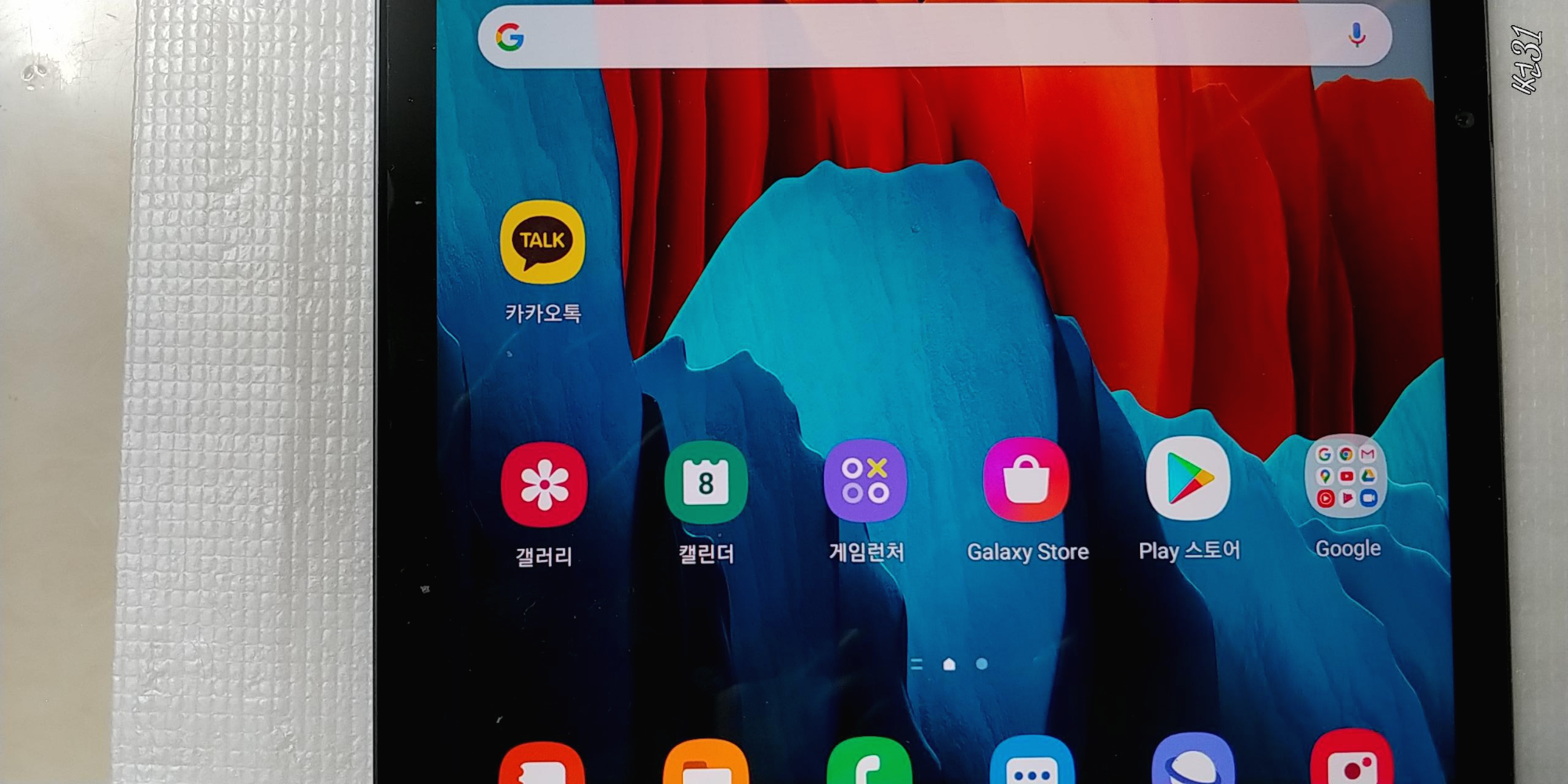 갤럭시탭S7을 처음 키면 기본 배터리가 남아있어서 바로 전원이 들어오고요.
