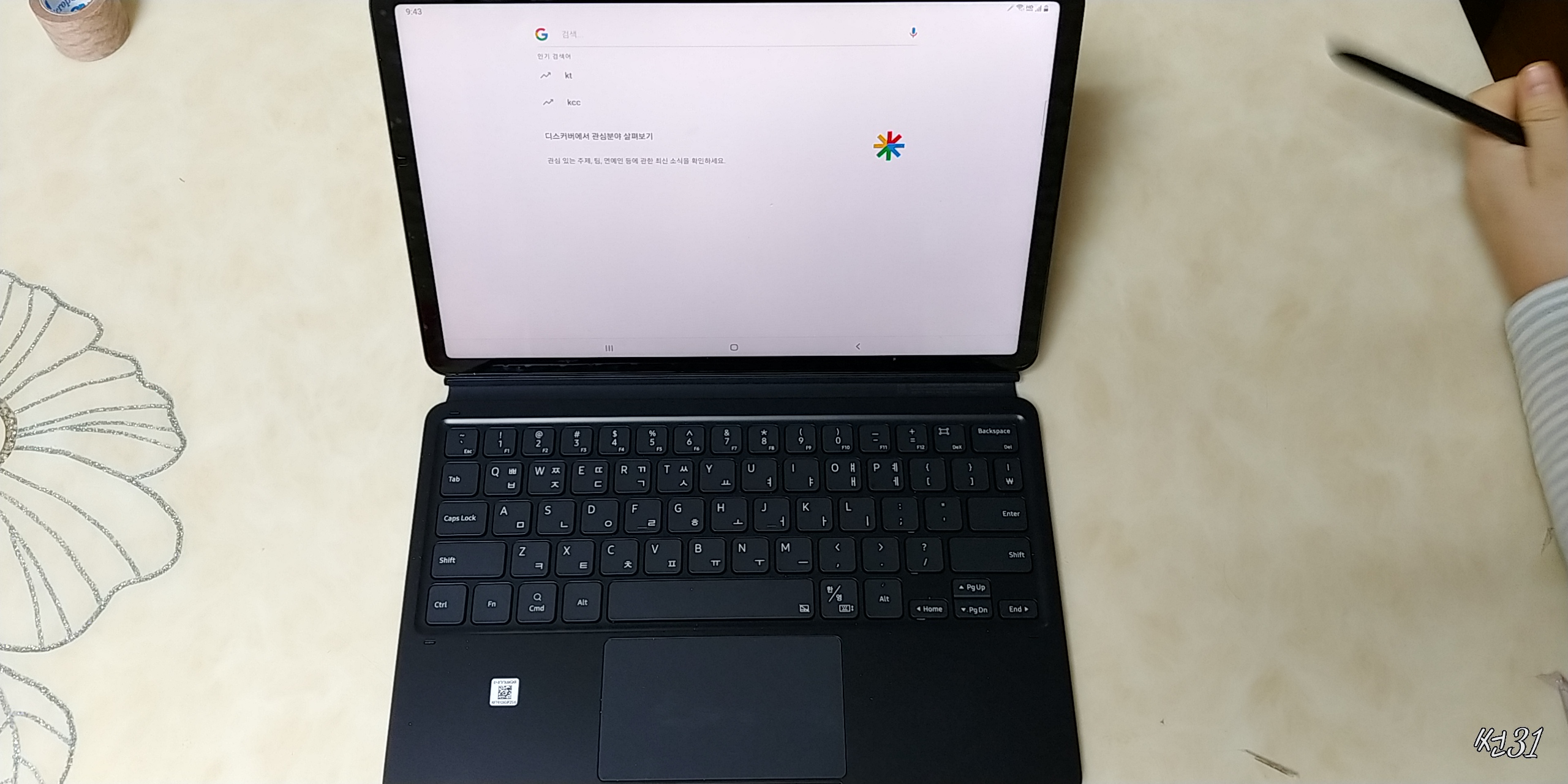 이게 탭인지 노트북인지 헷갈릴정도로 키보드북커버를 장착한 모습이 아주 깔끔하고