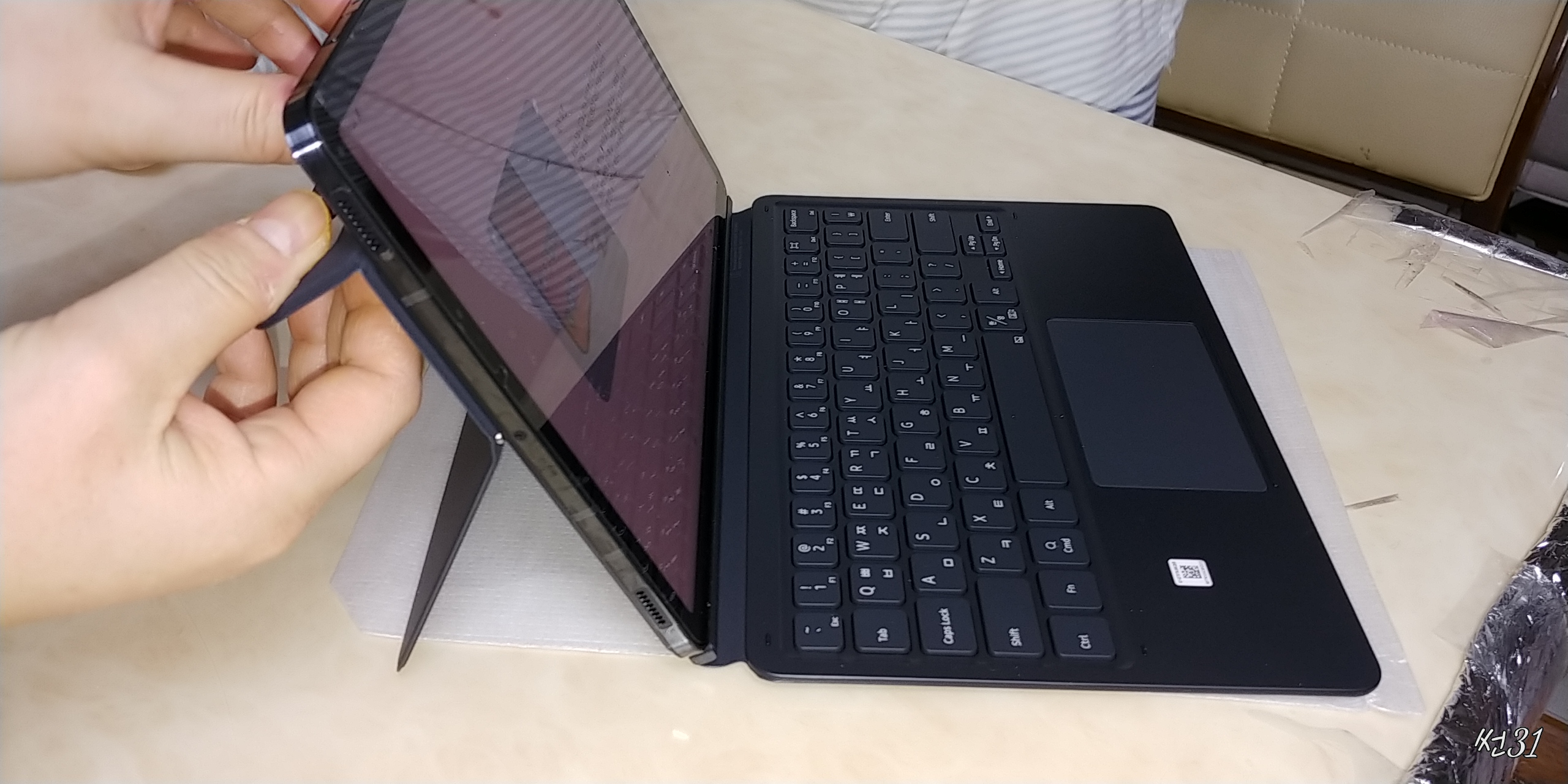 박스에 포장되어온 모습 그대로의 모습인데 키보드랑 펜은 일체로 같이 포장이 되어있습니다.