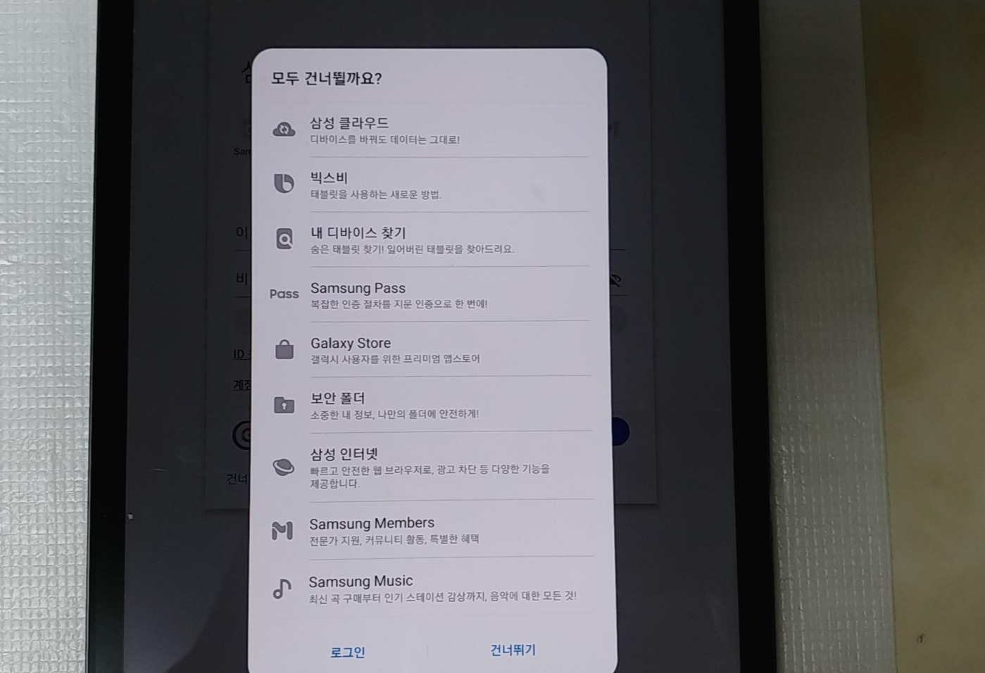 저는 일단 다 건너뛰기를 했고 며칠뒤에 이번에 갤럭시탭S7과 S7플러스 구입고객에게