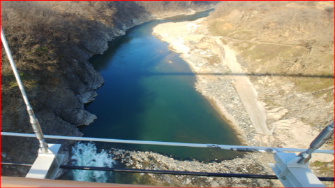 기암절벽으로 멋진 출렁다리이고 바닥이 강화투명유리로 쫙 되있어서 굉장히 멋지고 주변경관도 아주 아름다운 곳입니다.