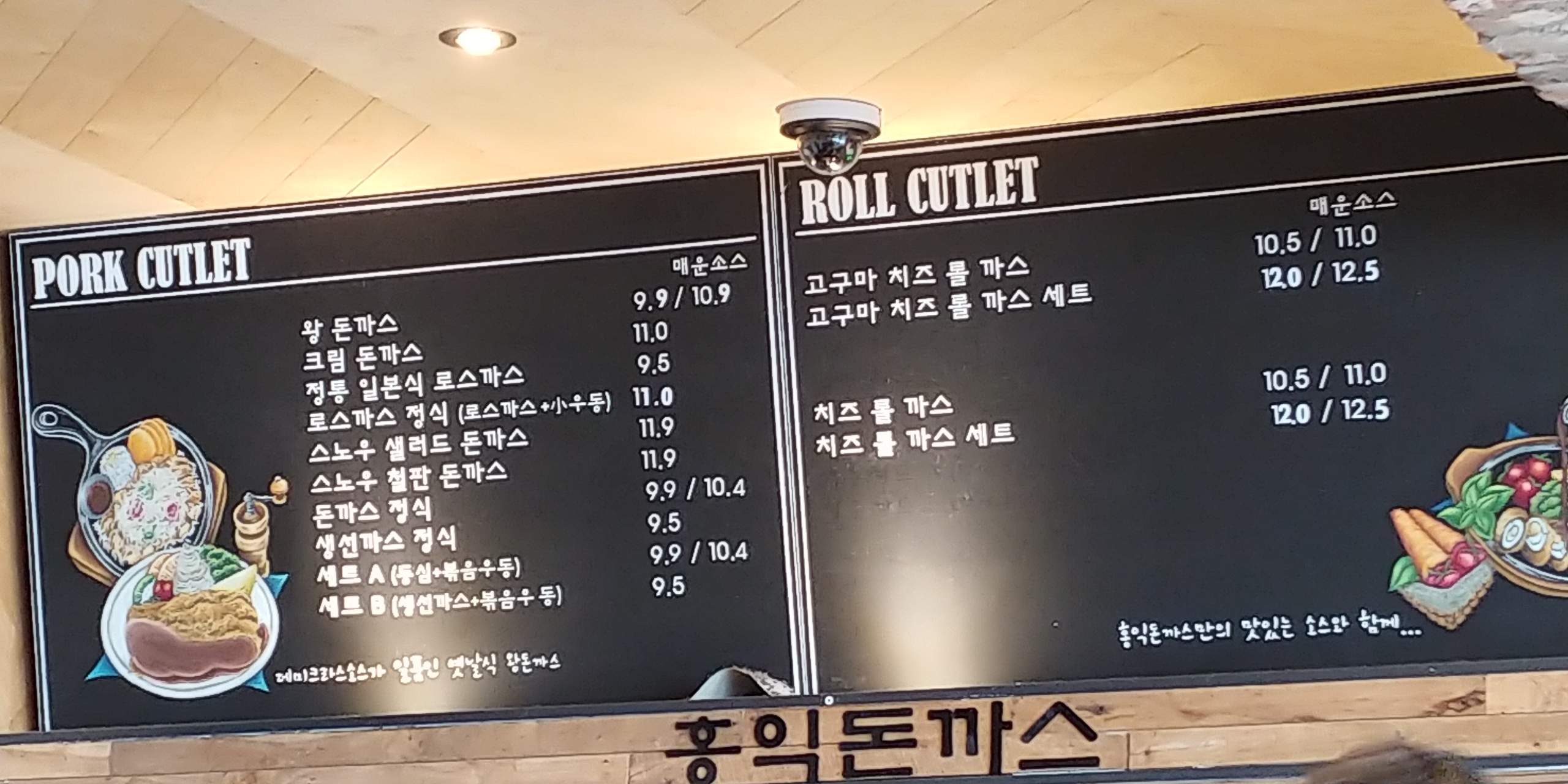 가격표을 보면 대표메뉴인 홍익 왕돈까스가 9900원이고 크림돈까스 11000원 비싸죠.