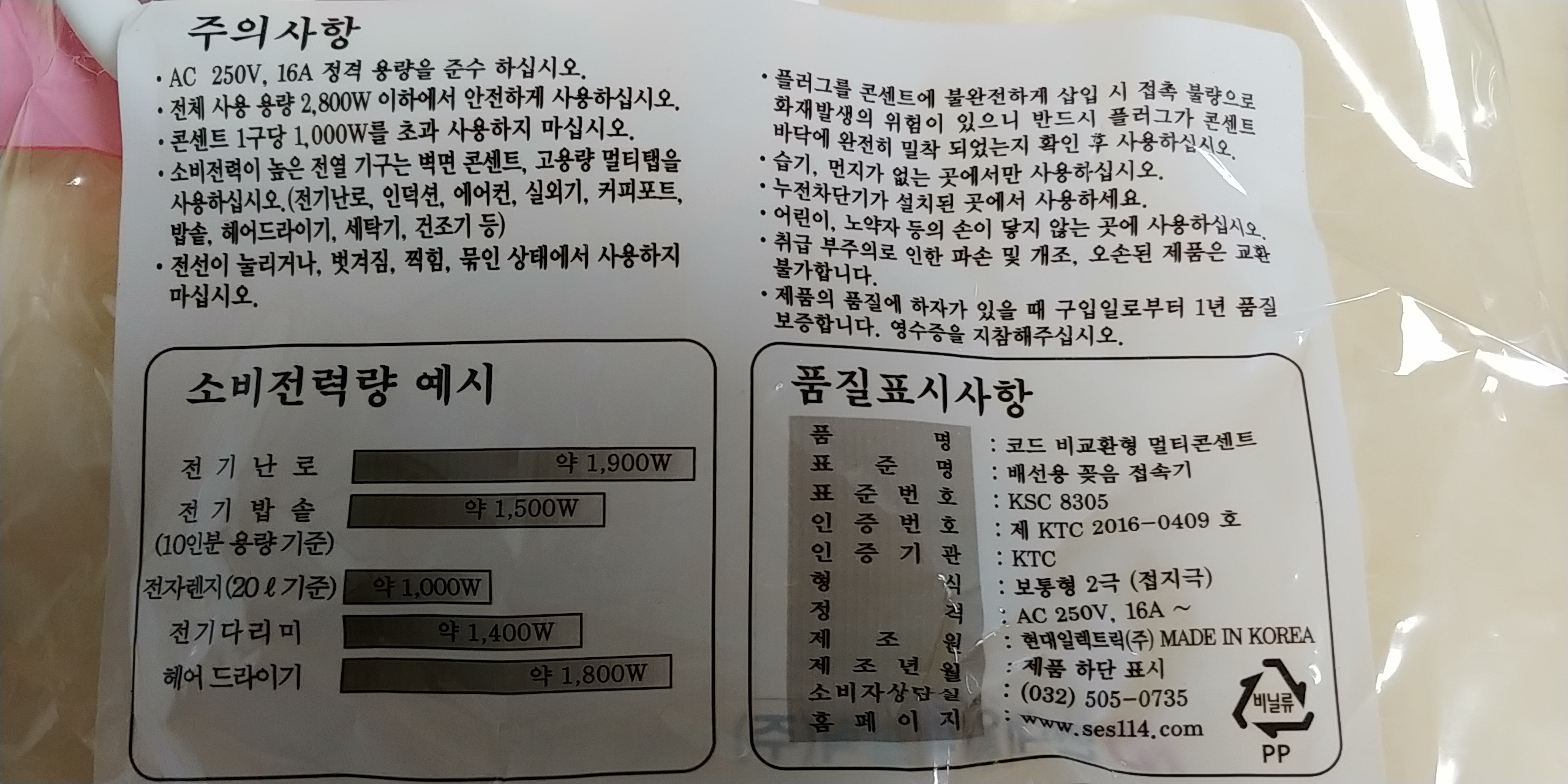 멀티탭 및 연장멀티탭 구입시 주의사항입니다.