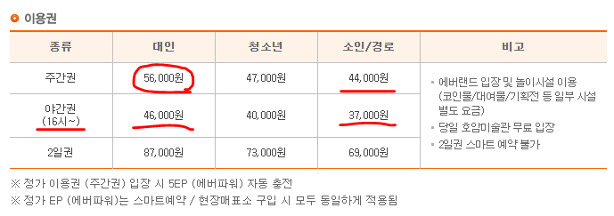 에버랜드 이용료 가격표