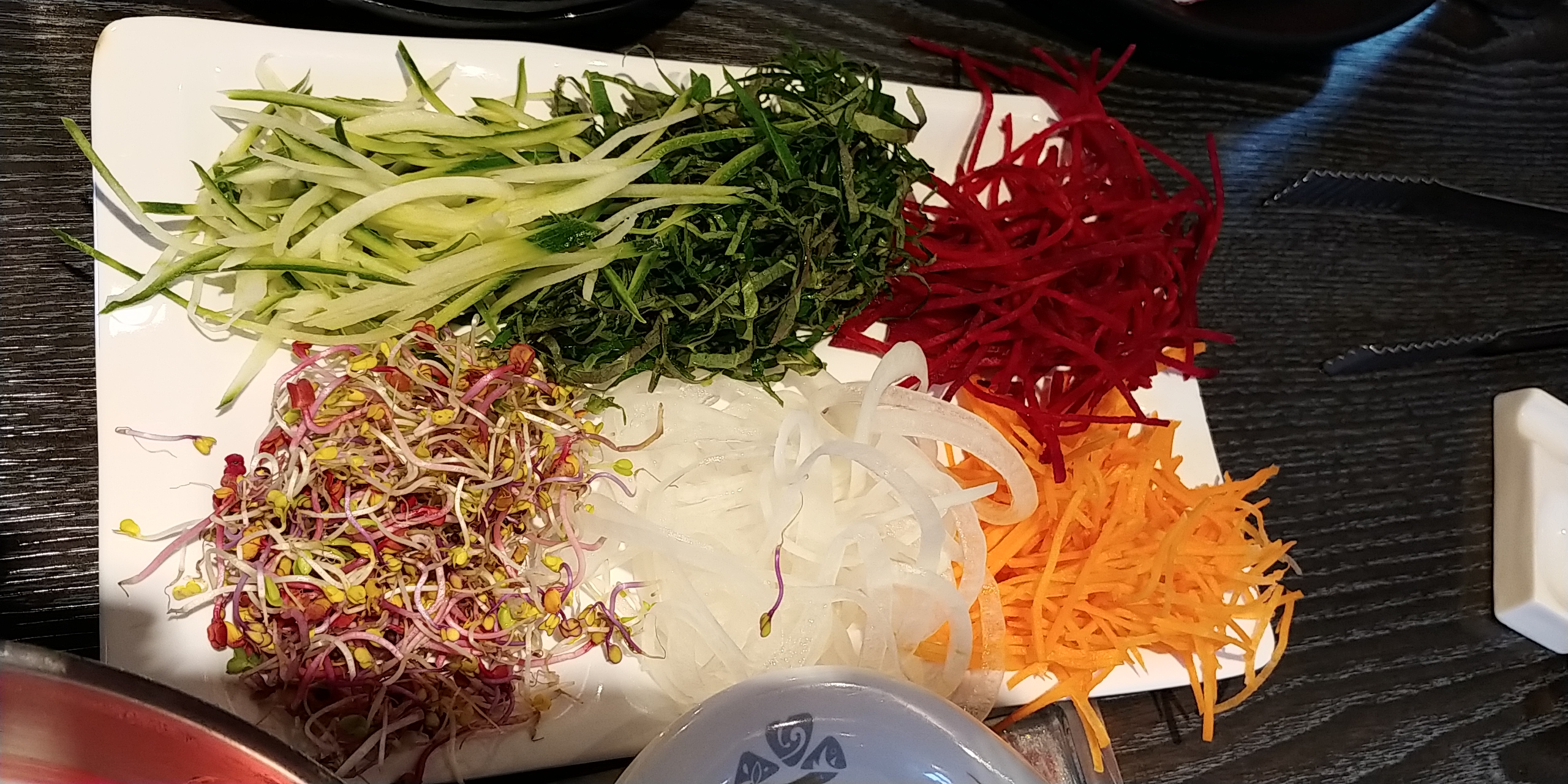 셀프무한리필바가 마련되어 있는데 각종 야채들이 마련되어있습니다.