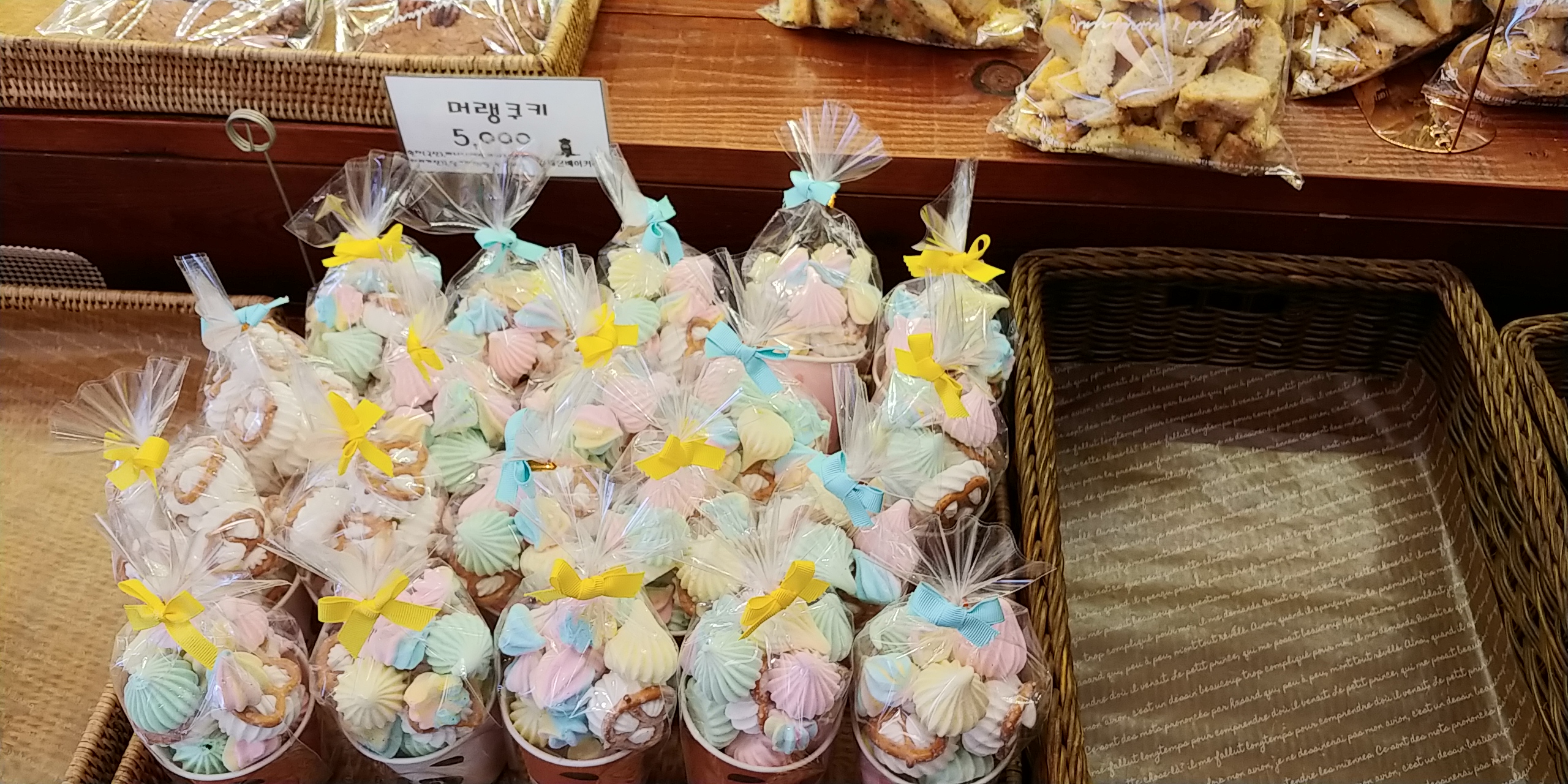 머랭쿠키라고 쿠키인데 아주 달고 화려한 색감이 특징인데 가격은 5000원입니다.