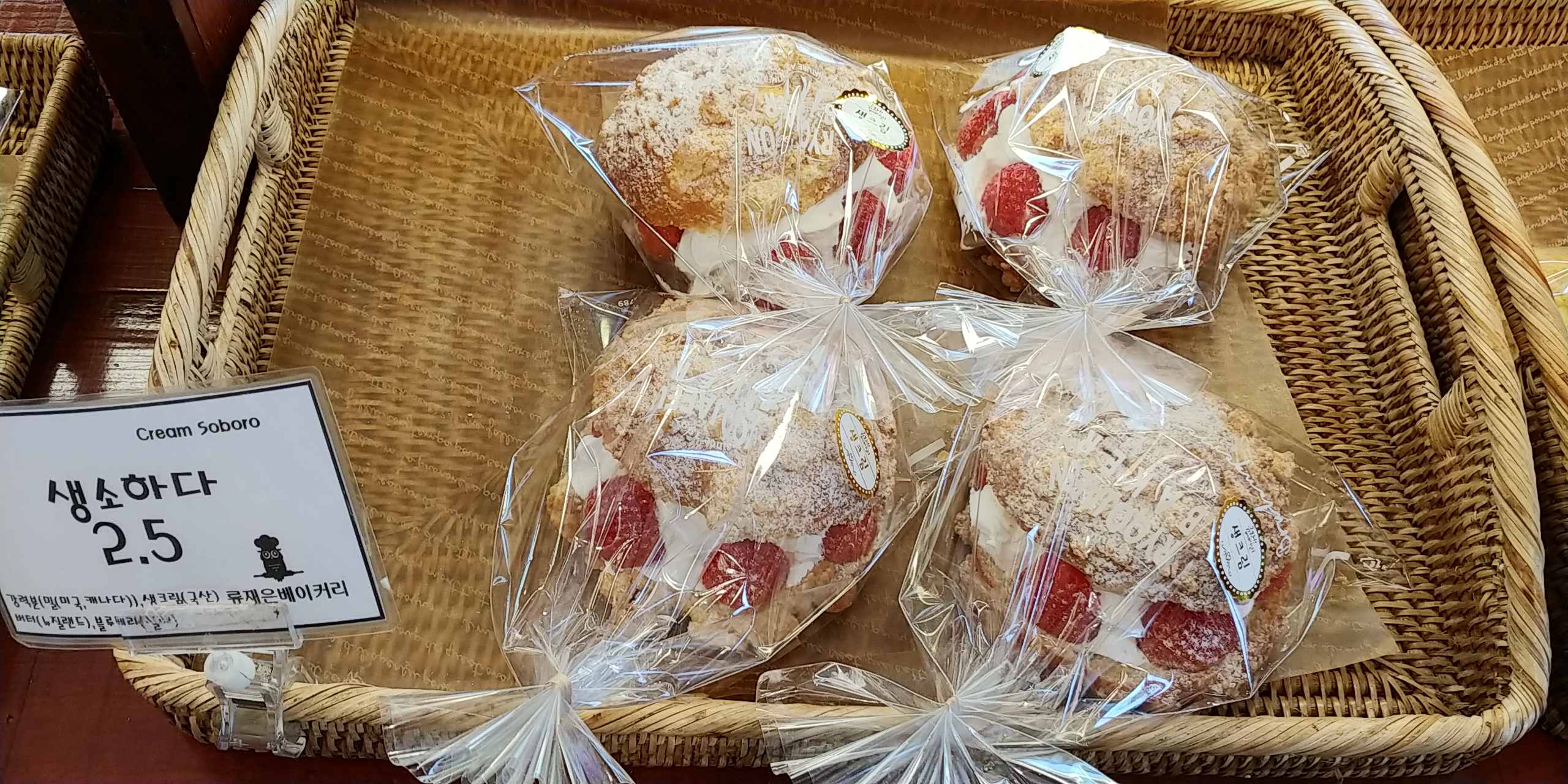 딸기가 들어간 크림빵인데 사서 먹어보았는데 아주 맛있습니다.