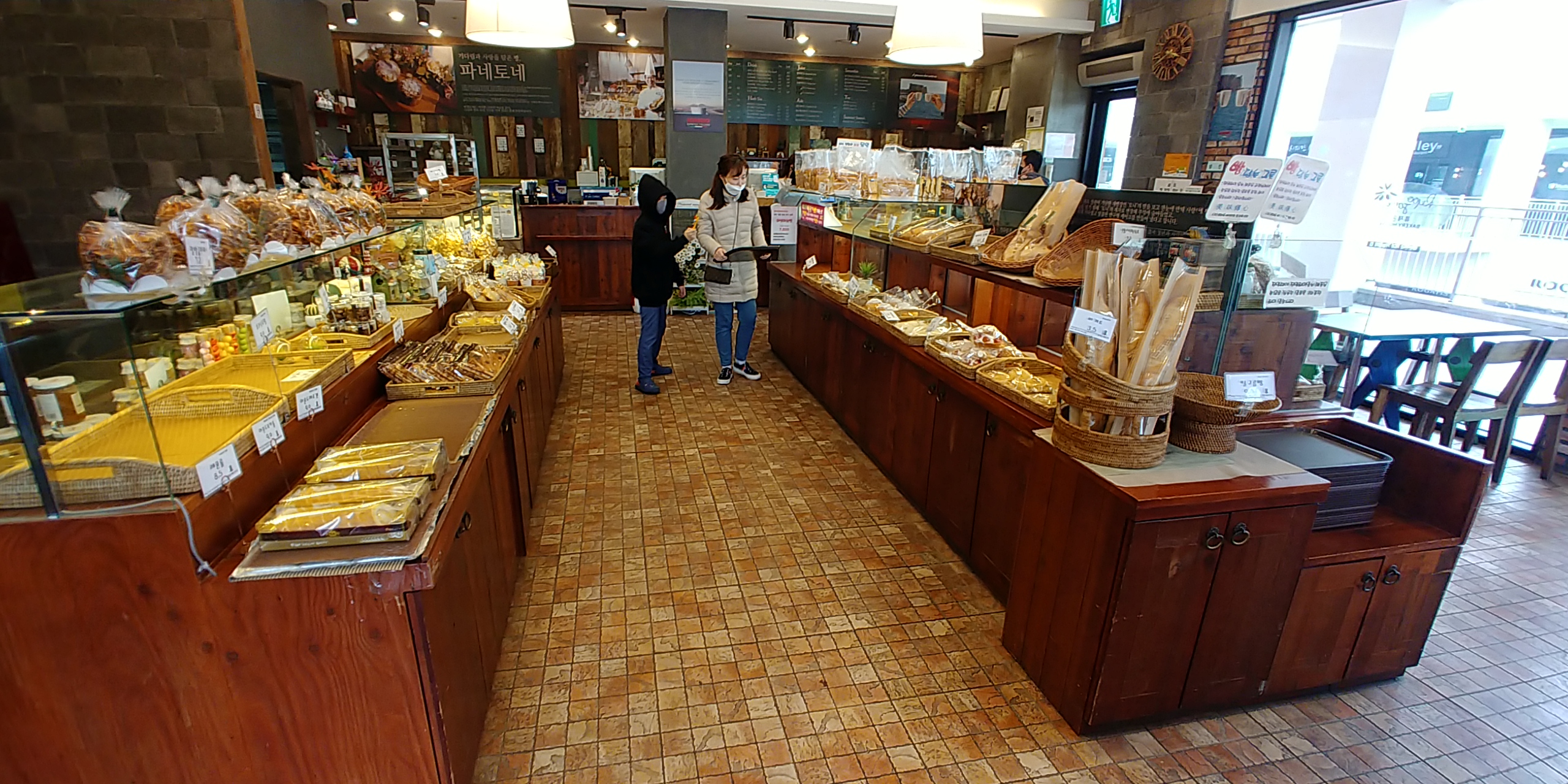 빵집 내부가 아주 깔금하고 베이커리 답게 색갈은 갈색 브라운 계통으로 잘 디자인해놓았군요.