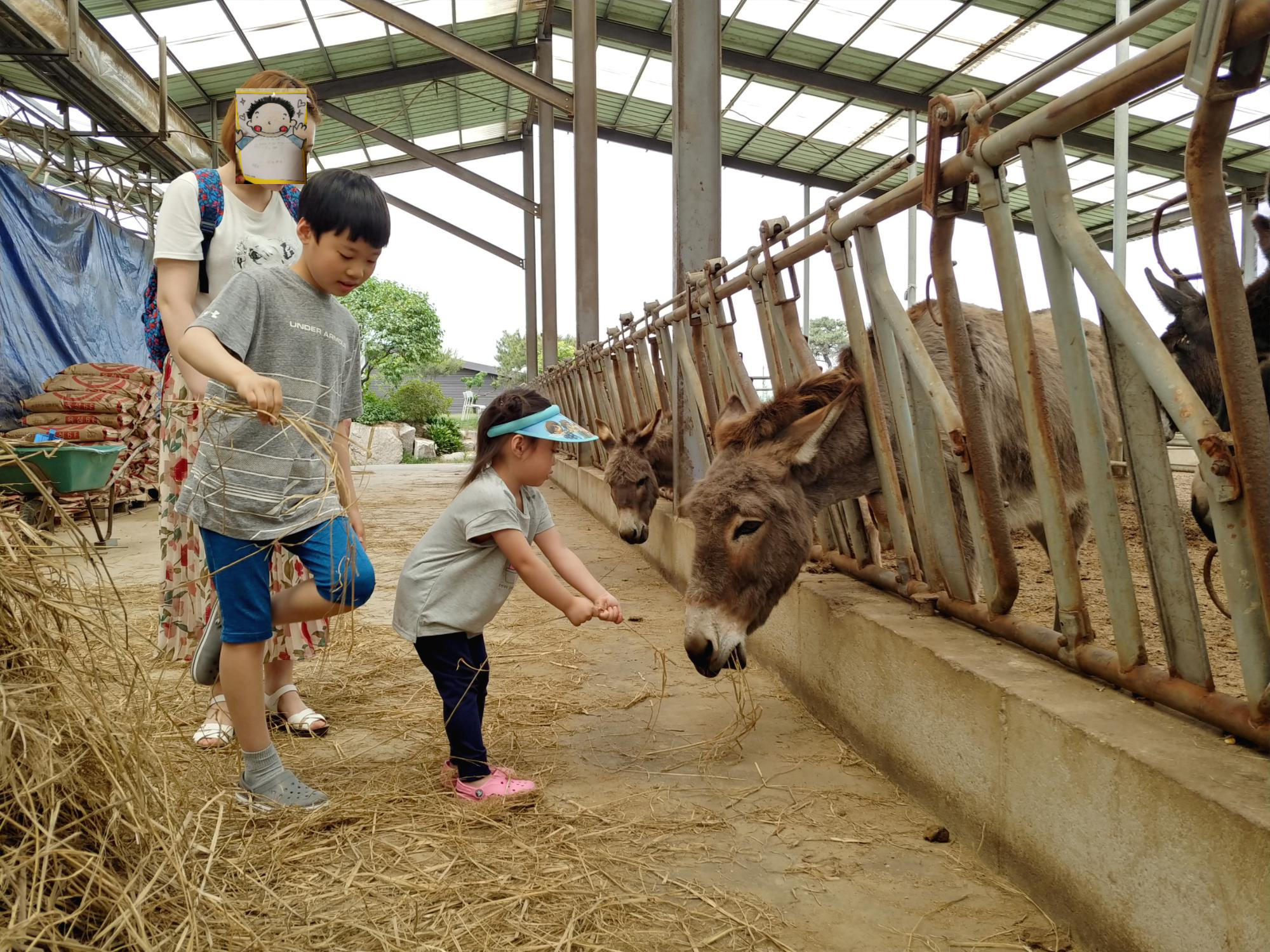 축사에서 말 먹이 주는 체험할수있고요.아이들이 말먹이 1시간은 준듯합니다.어른은 좀 지루할수 있고 냄새도 나서