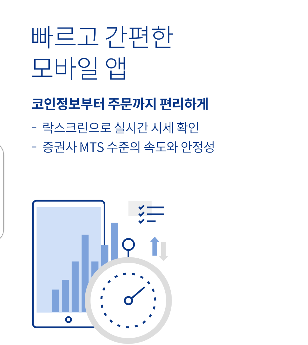 빠르고 간편한 앱이라고 홍보하고 코인정보에서 주문까지 편리하게 가능하고