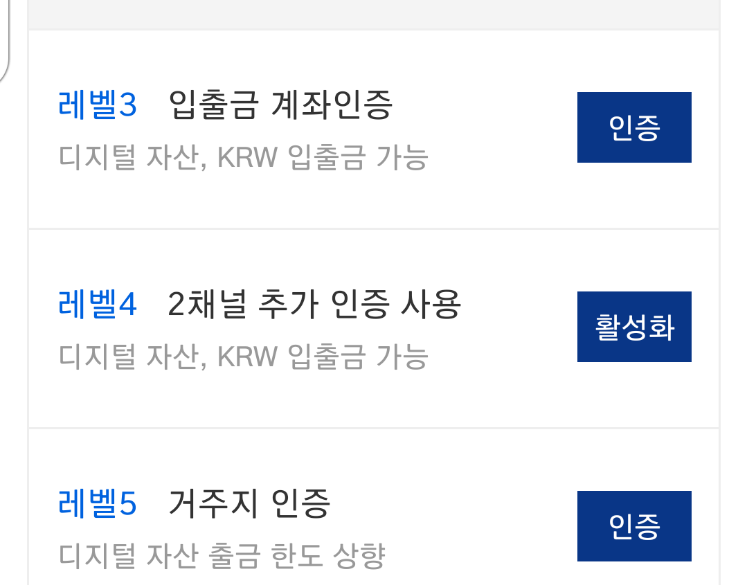 레벨 3단계까지는 올려야 정상적인 입출금이 가능합니다.