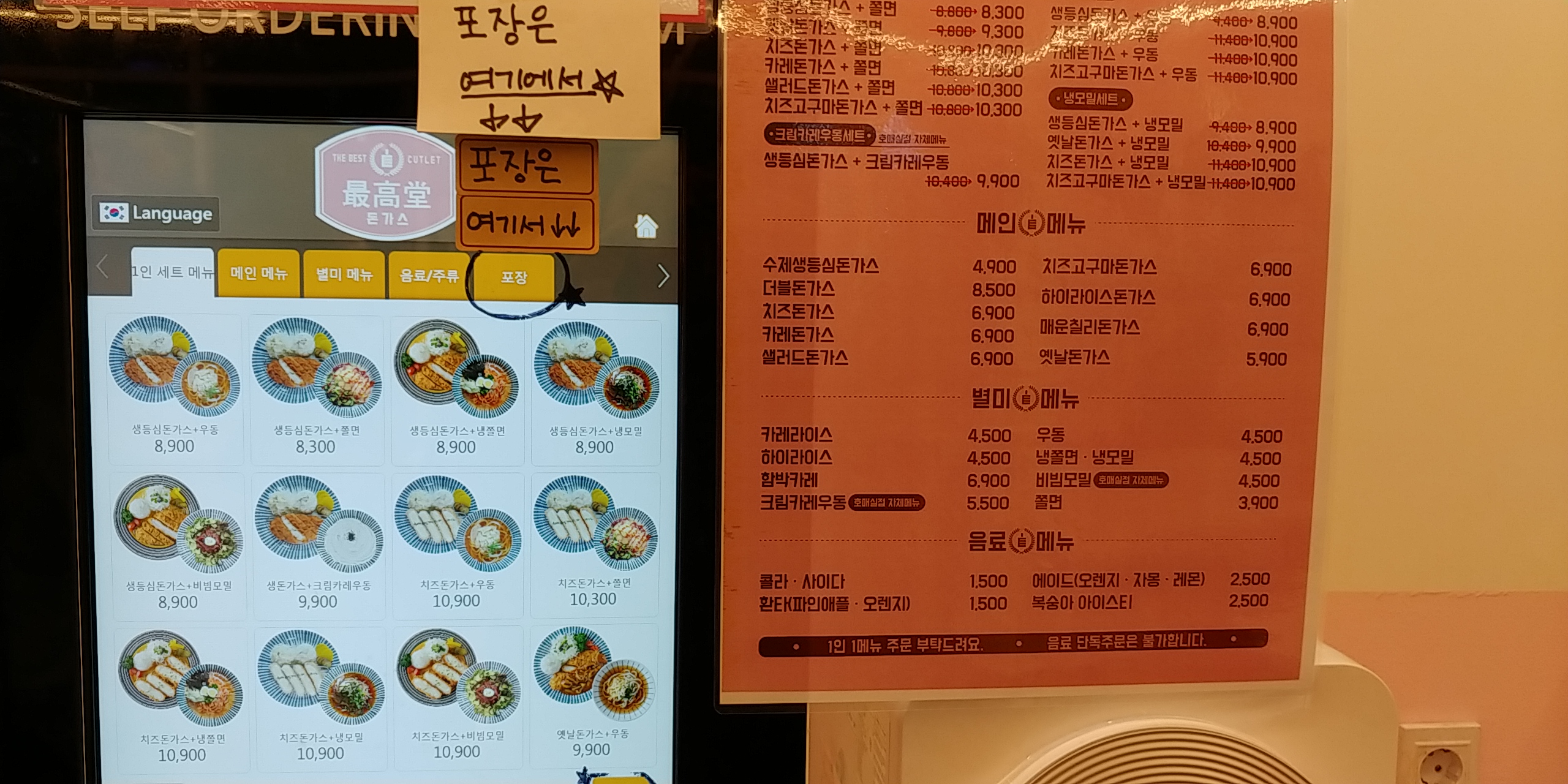 포장은 무인계산기 화면에 강력하게 표시가 되어있습니다.