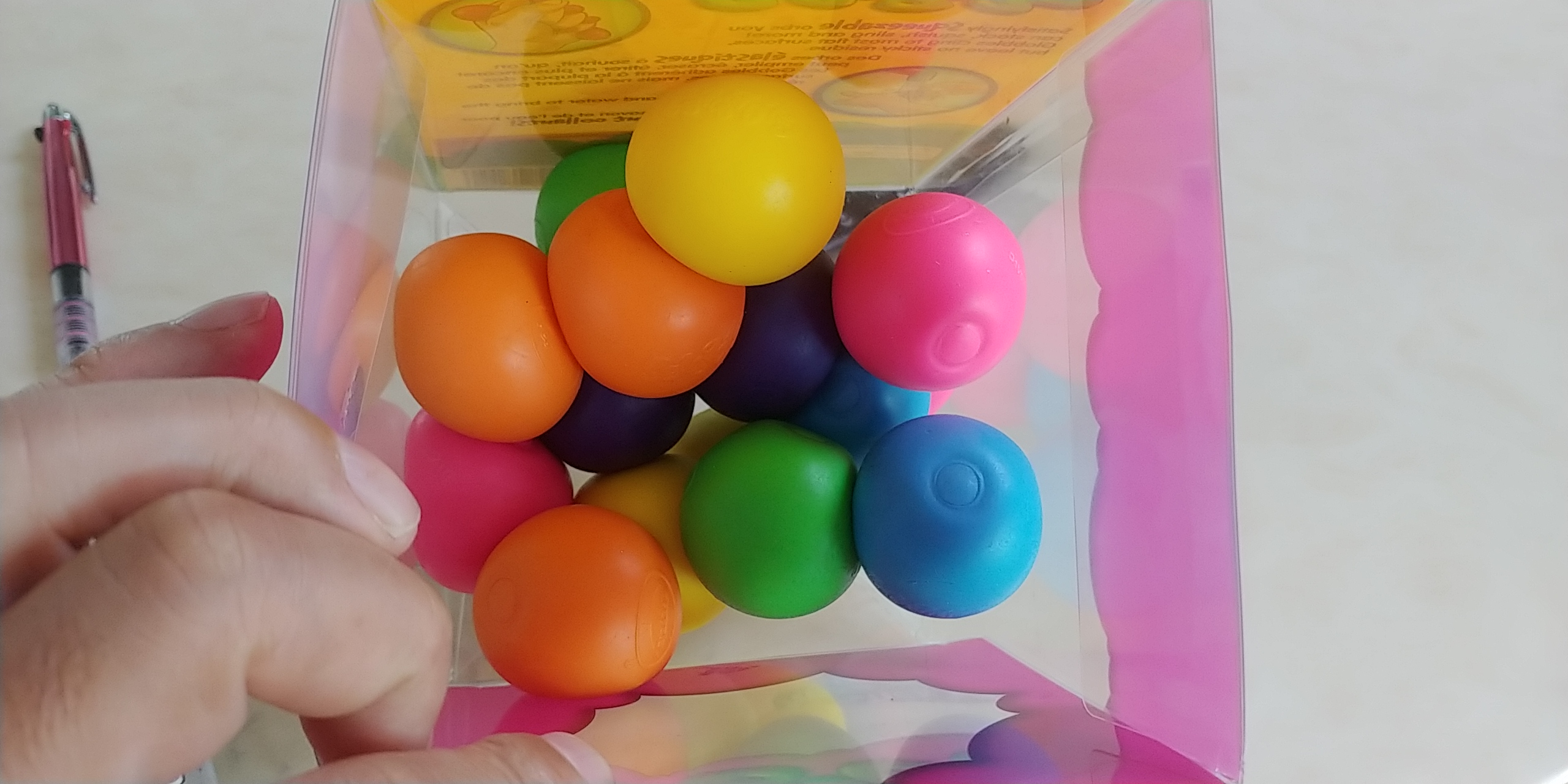 플라스틱 박스안에 고무공?젤리공?이 열댓개 들어있는것이 다입니다.