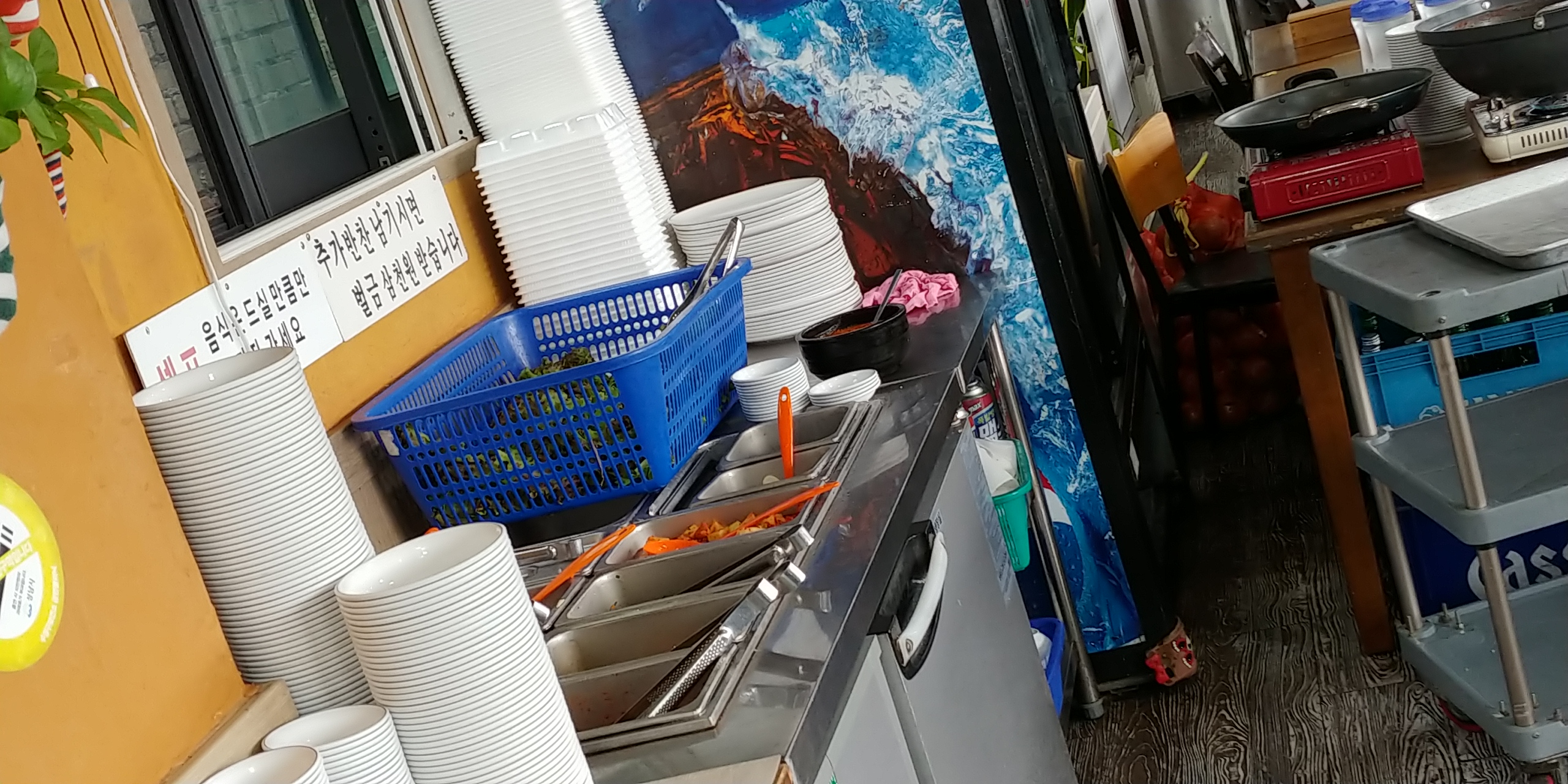 좀 특이한곳점이 냉면,백암순대국을 함께 한다는 광고스티커가 딱 붙어있습니다.