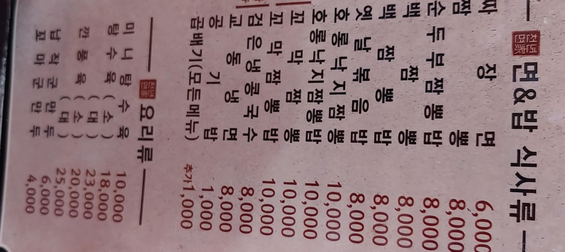 가격표를 보시면 짜장면이 6천원이고 짬뽕이 8천원입니다.