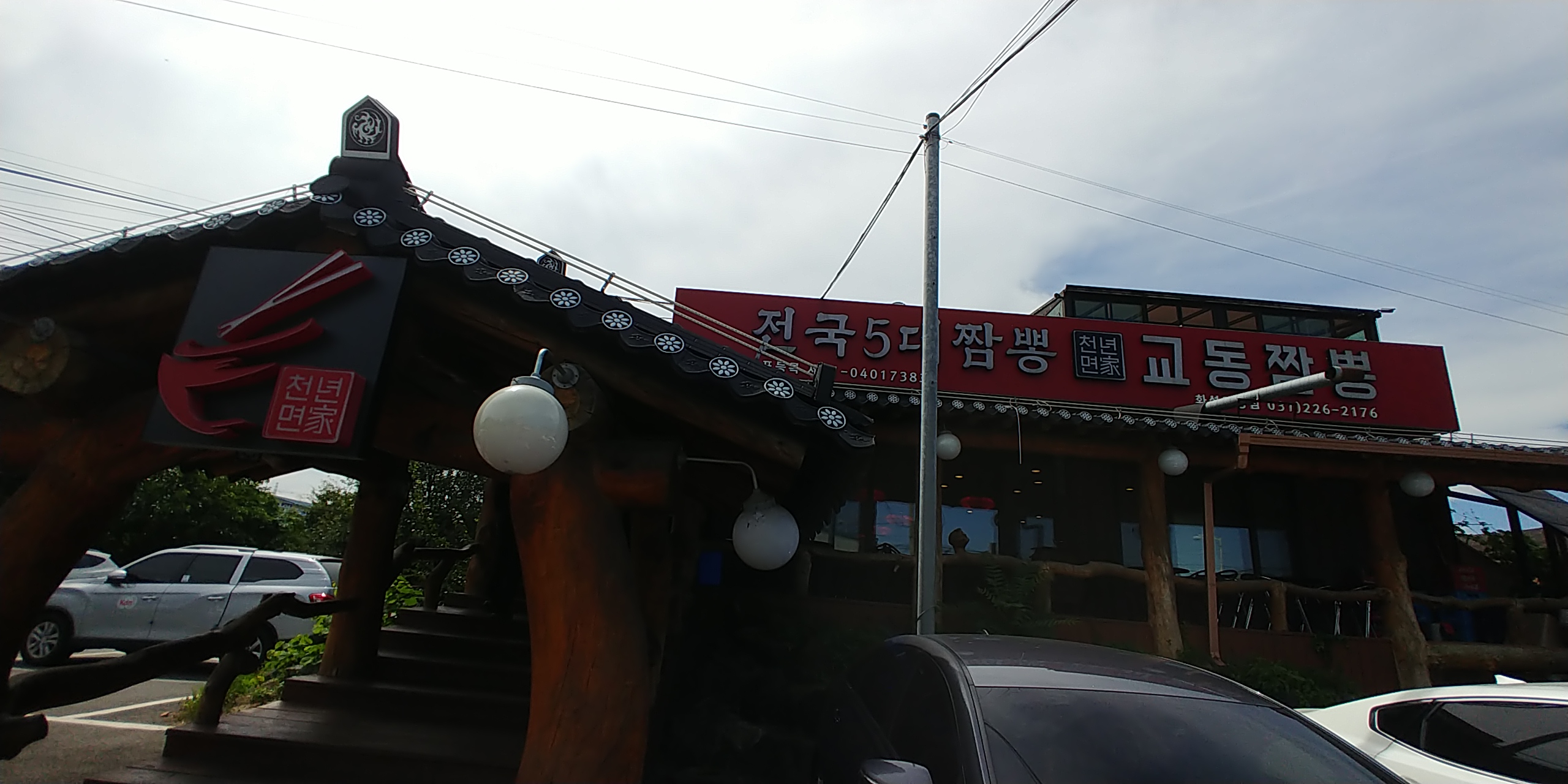 나무 위주로 바닥과 외관을 기와집 스타일로 한옥스타일로 만들어서 천년면가라는 이름과 잘어울리네요.