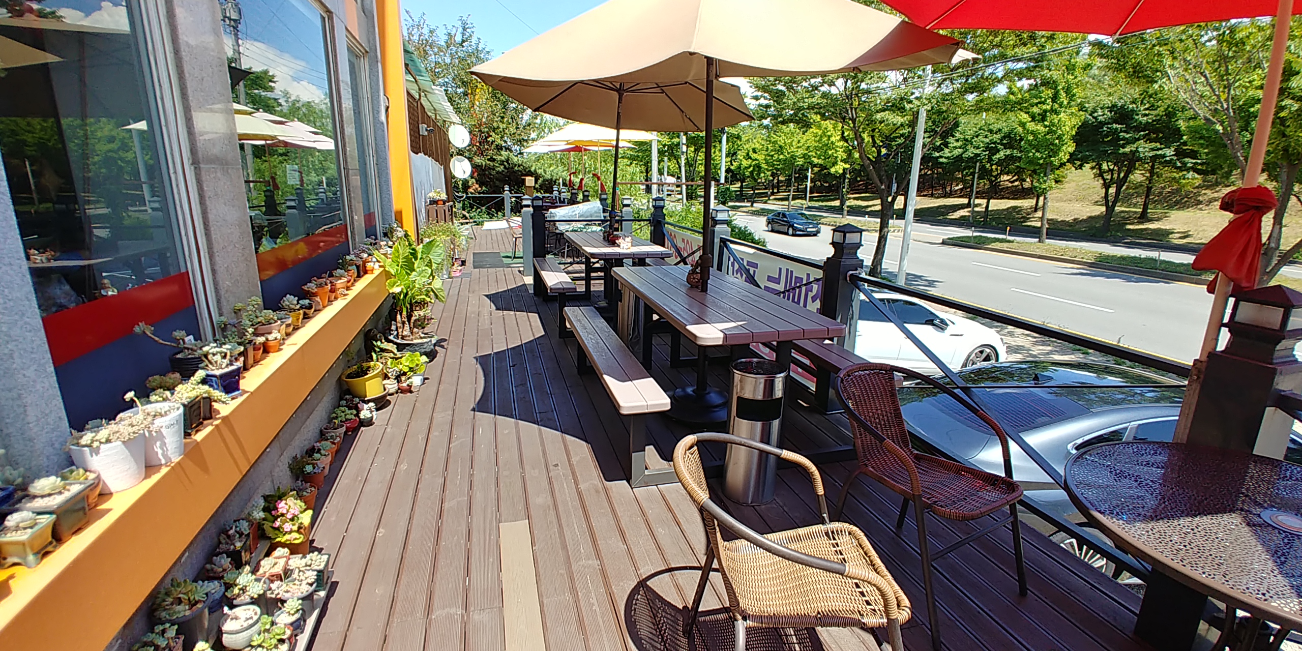 야외로 나가면 커피를 먹을수있는 공간이 마련되어있습니다.