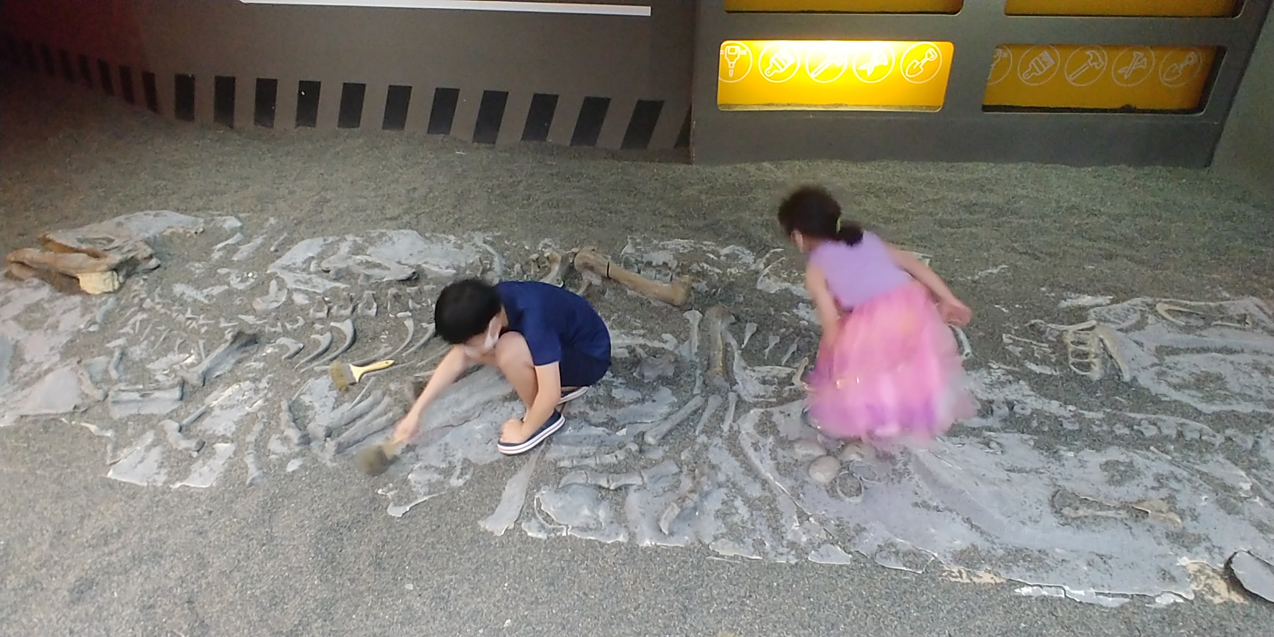화석발굴하기 체험인데 붓같은걸로 모래에 덮인 공룡화석을 발굴하는 체험하는곳인데