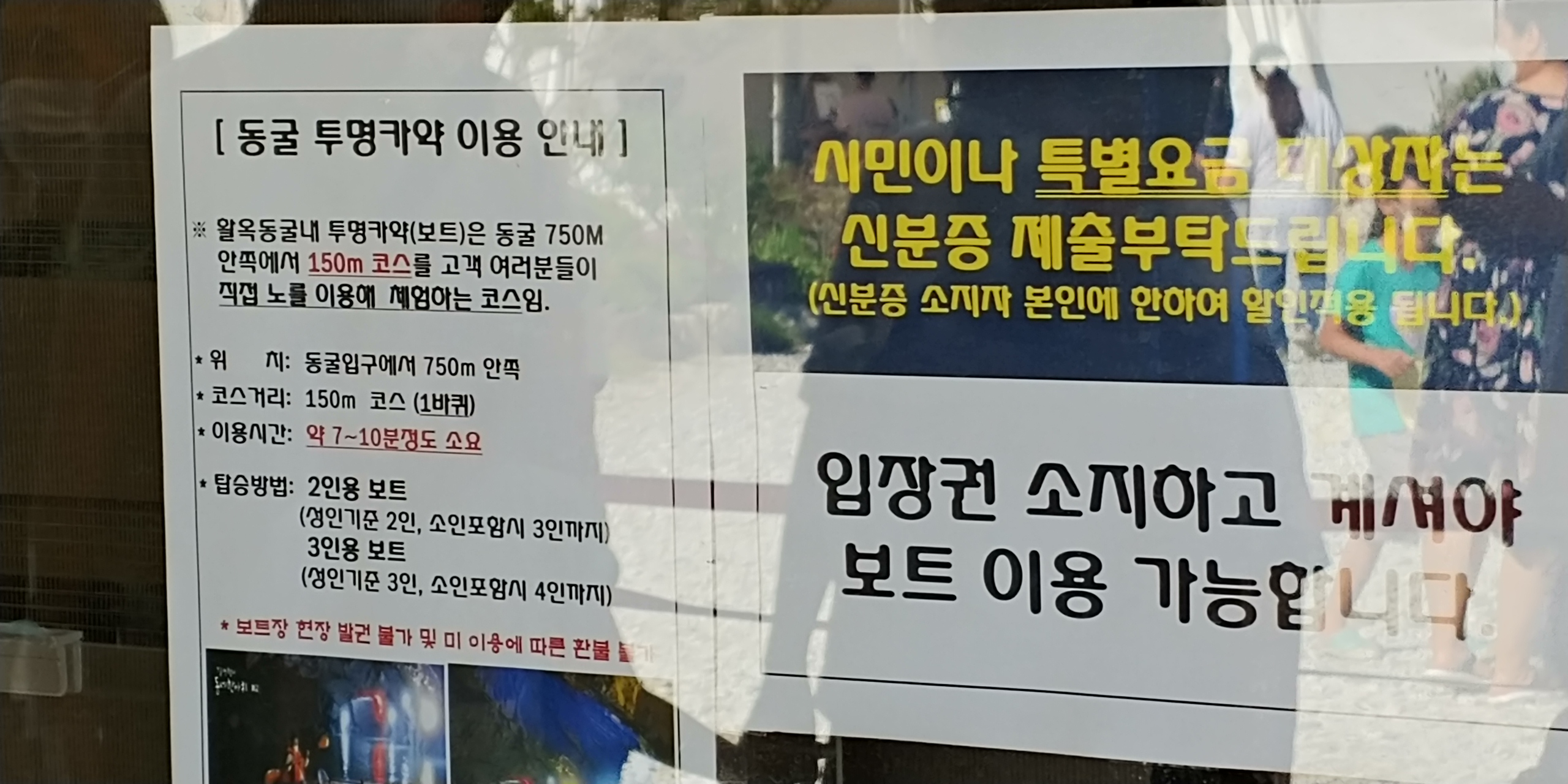 활옥동굴내 투명카약(보트)는 약 750미터 안쪽에 위치해있습니다.