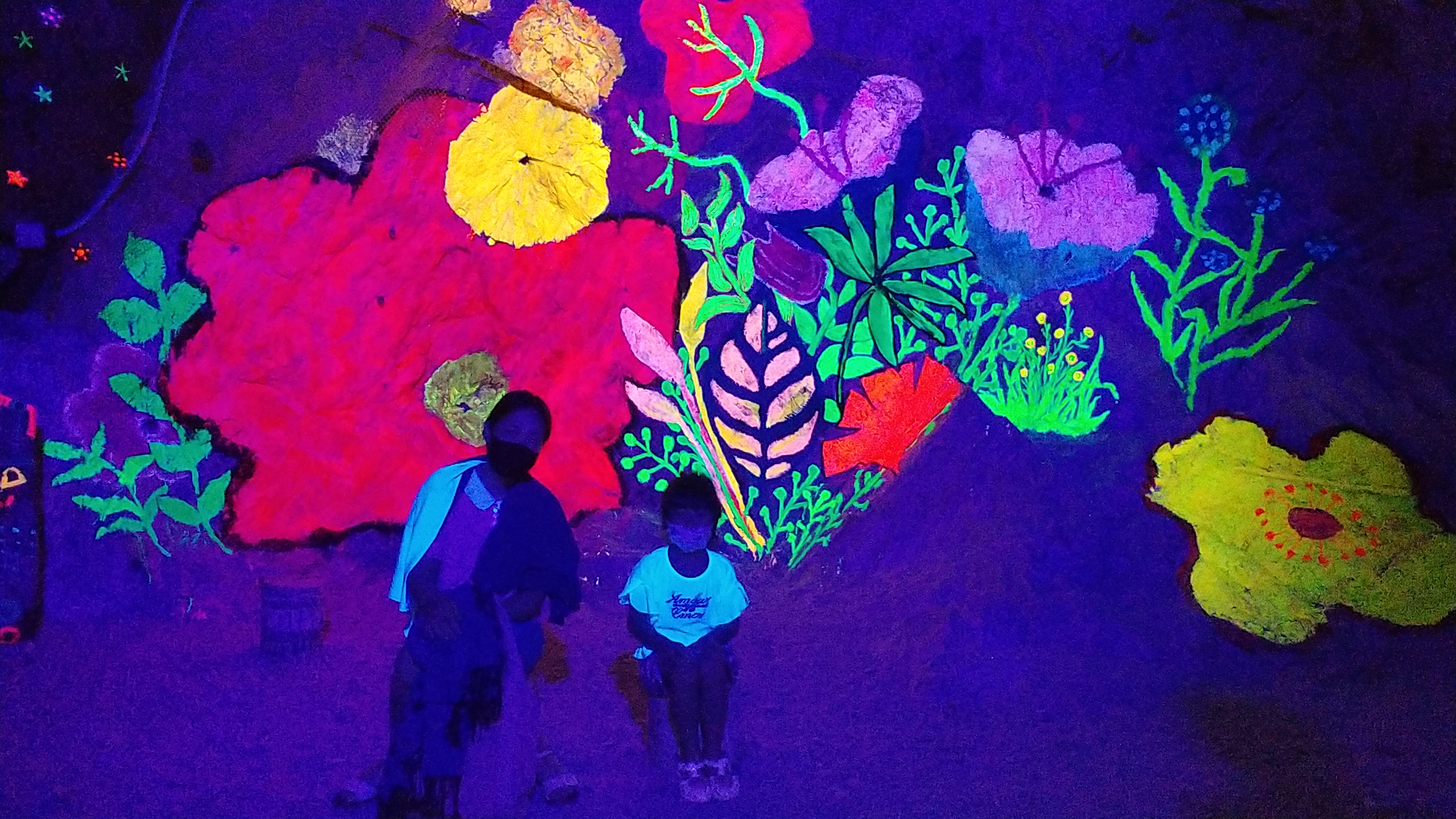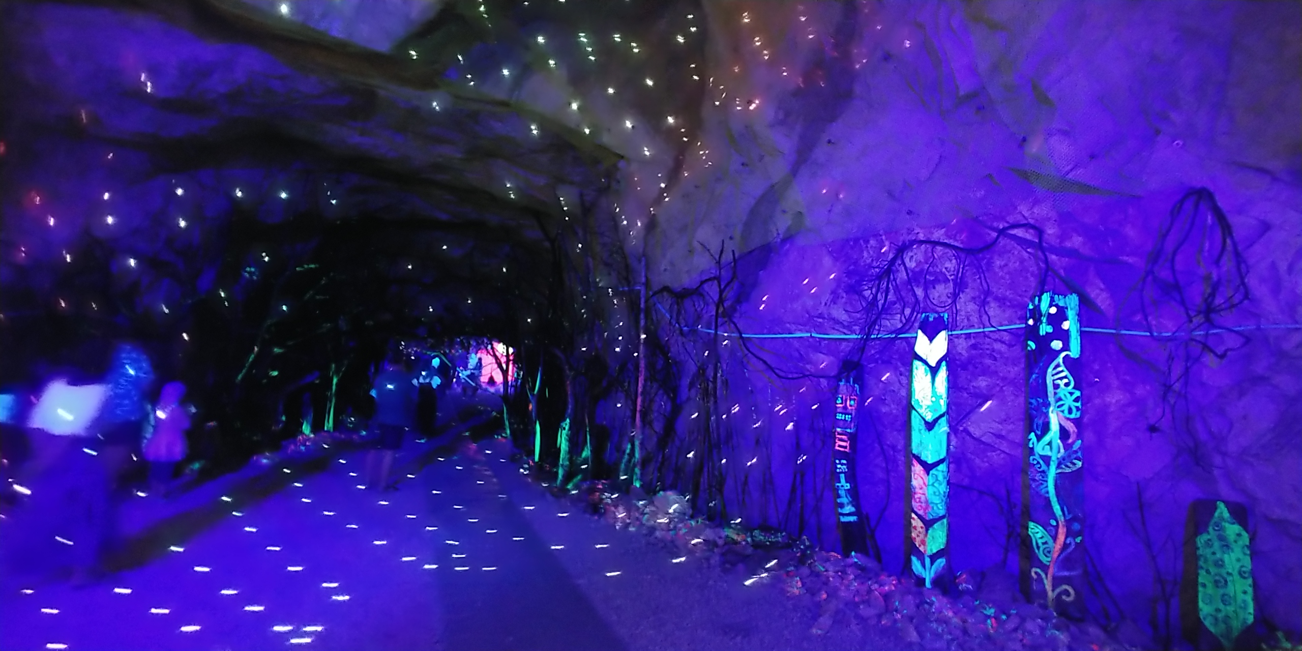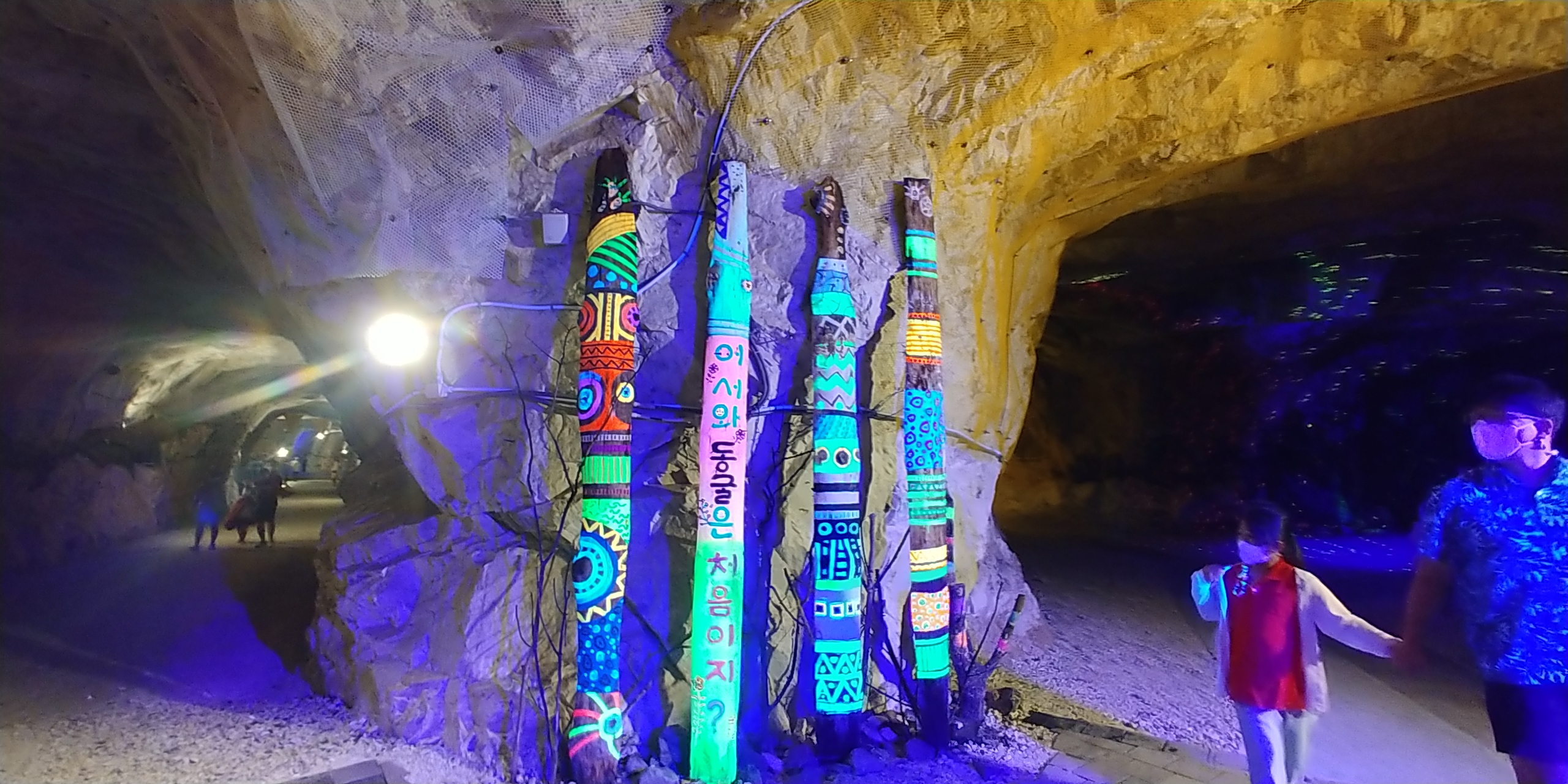 동굴방이 있는데 들어가면 옷이나 주변 조형물을 형광네온불빛이 쏘면 멋지게 빛을 발합니다.