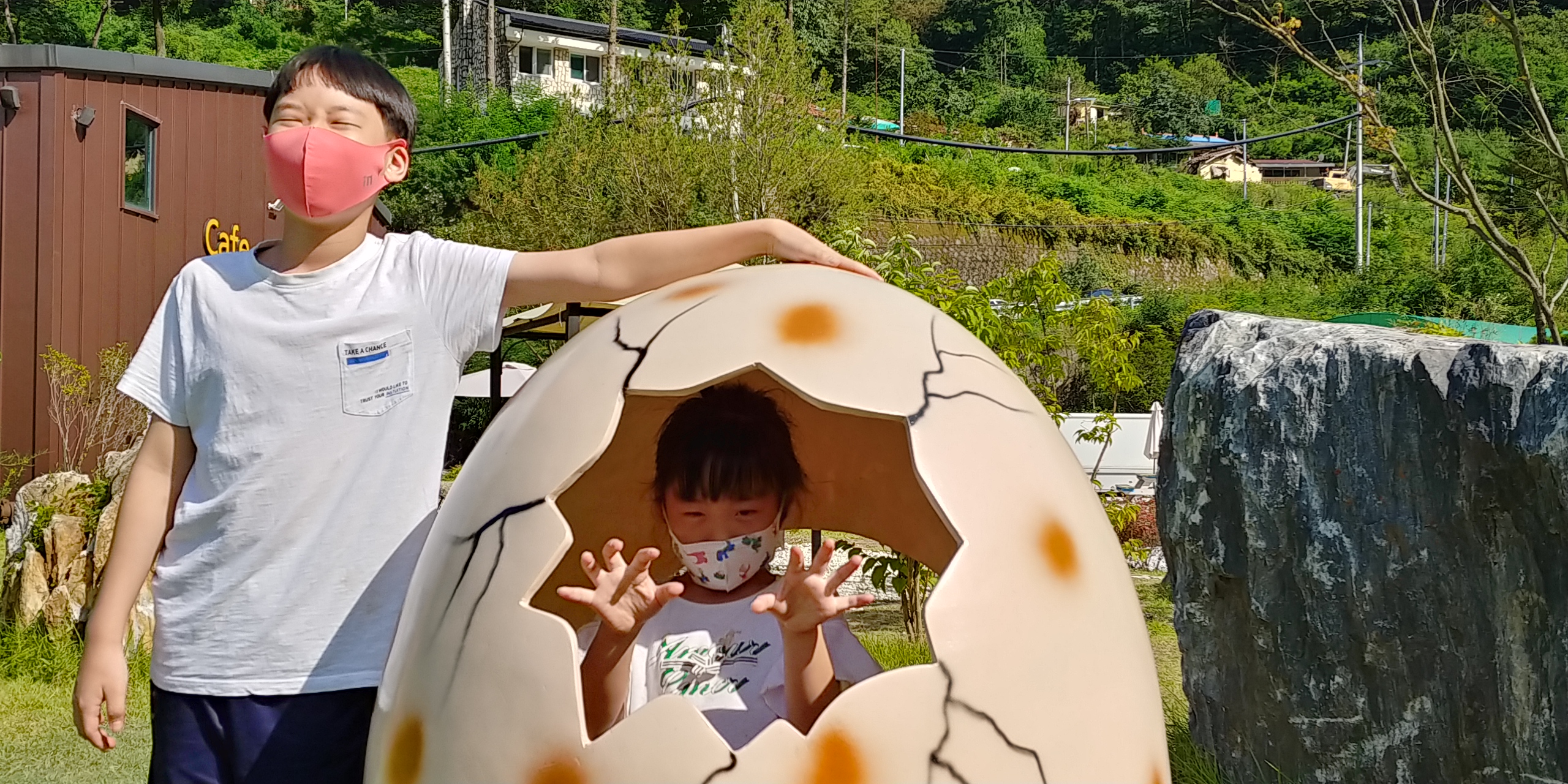 잔디정원에는 이렇게 공룡 알을 크게 만들어놓아서 사진찍고 놀기도 하고 좋내요.