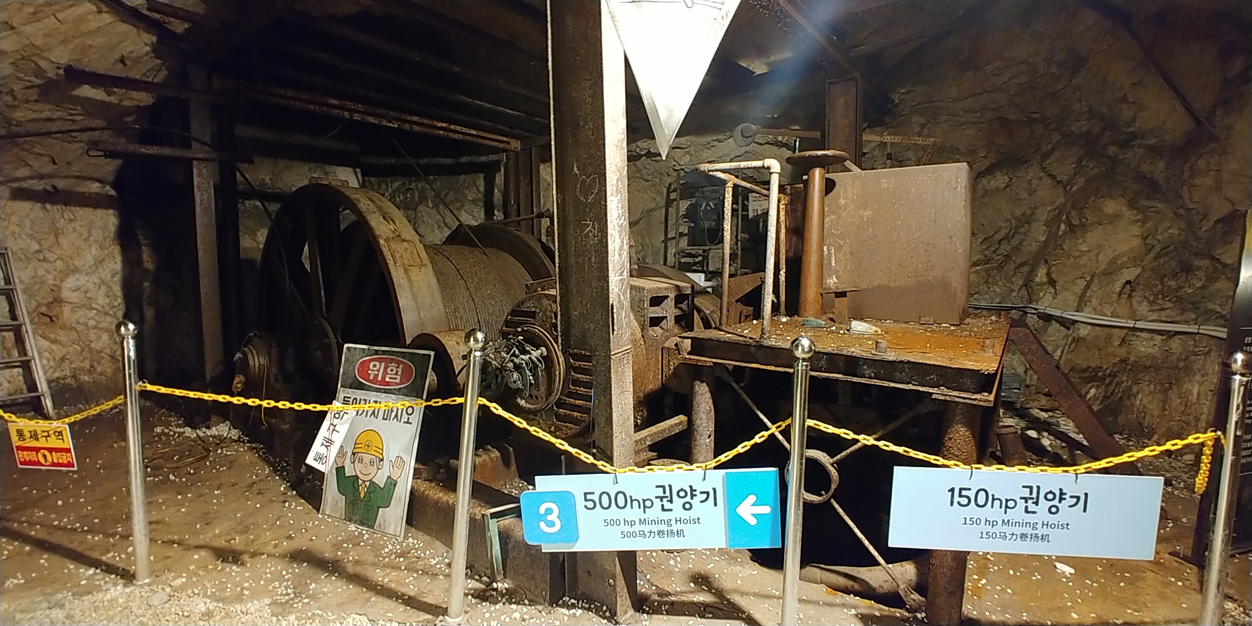 중간중간에 채석장으로 동굴을 사용하던때에 남겨진 기계나 구조물들이 남아있어서