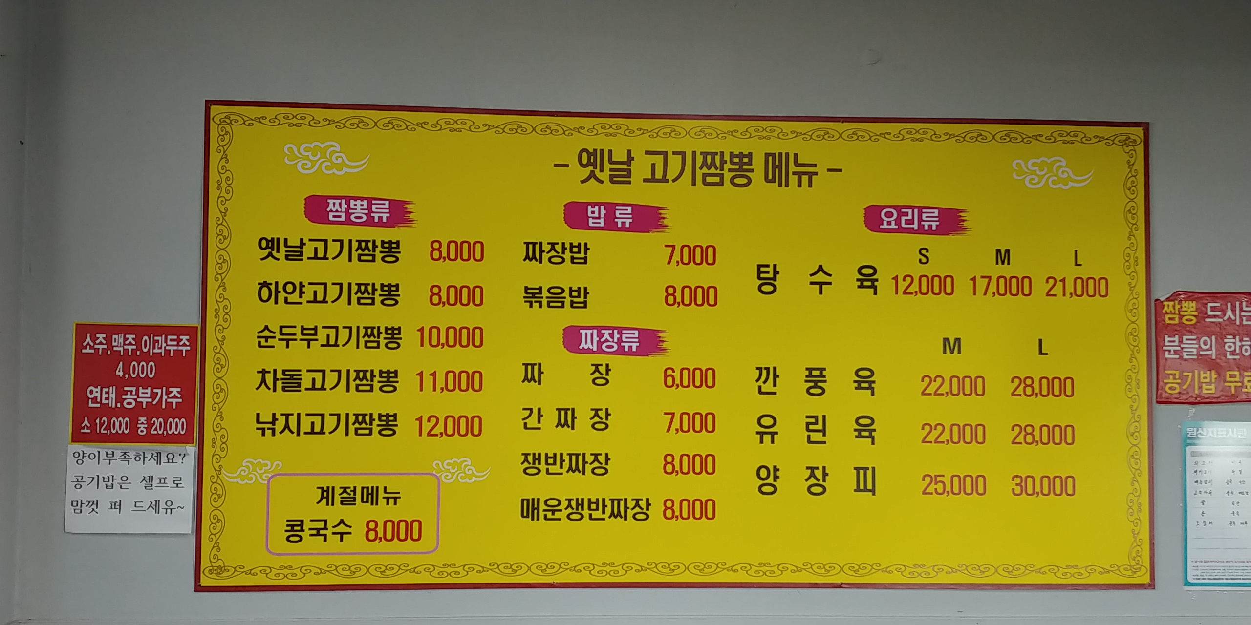 안산 맛집 옛날고기짬뽕 메뉴표