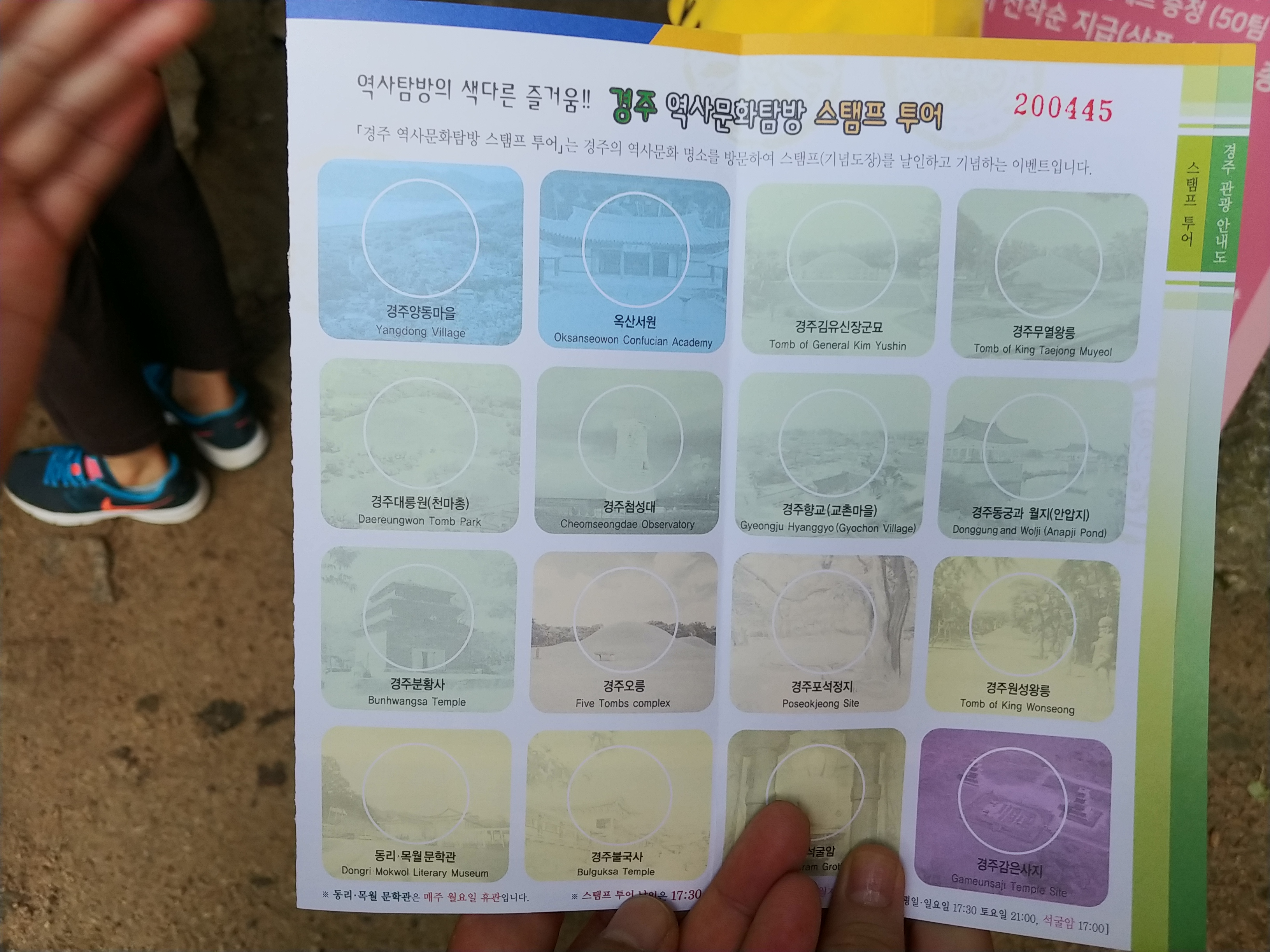 경주역사문화탐방 스탬프투어라고 16개 다찍어서 지정장소로 오면 작은 선물을 주는데