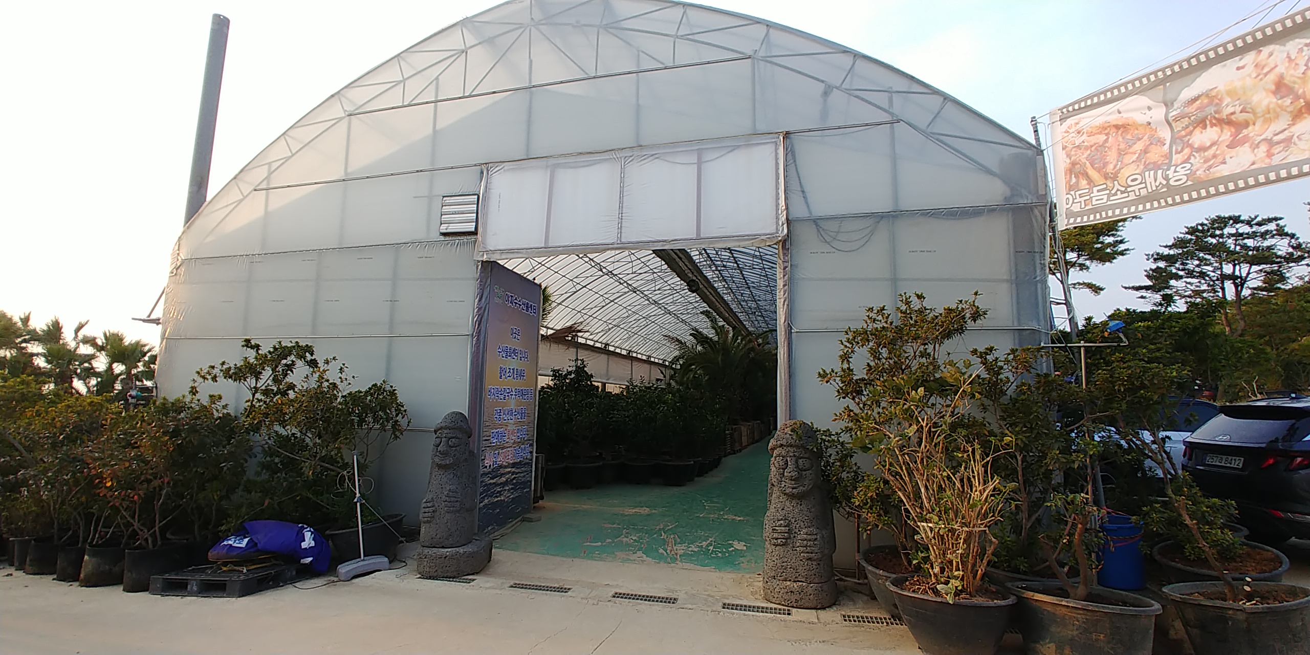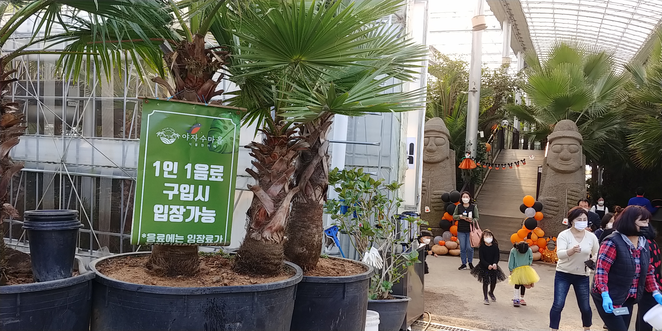큰하우스로 만들어서 이곳으로 입장하는데 안에서 먹을거먹고 식물,야자수 둘러보는것이다.