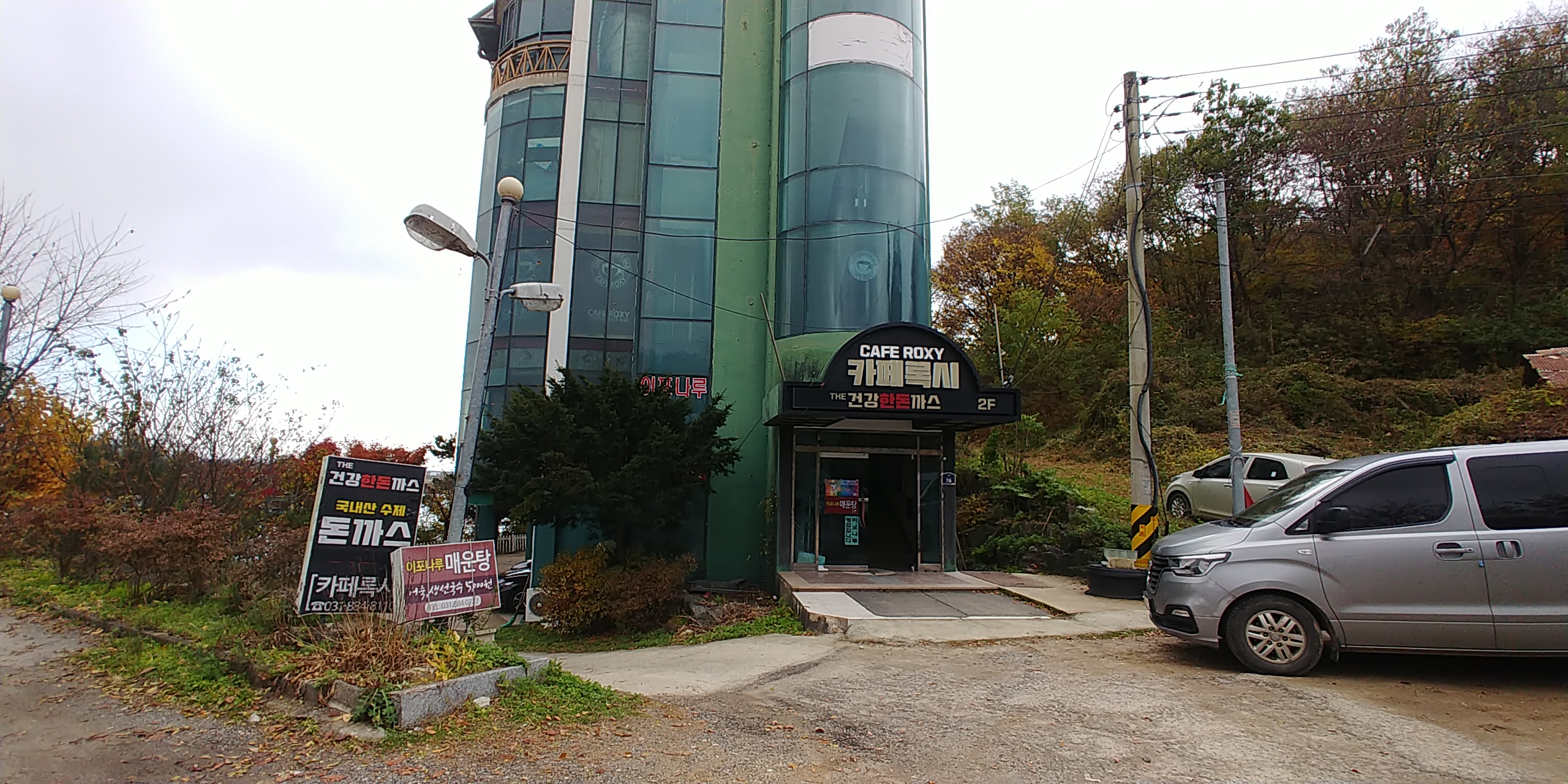 덩그러니 건물이 강옆에서 있어서 좀 생뚱맞기도 하는데 그리고 카페록시라는 건물이 간판을