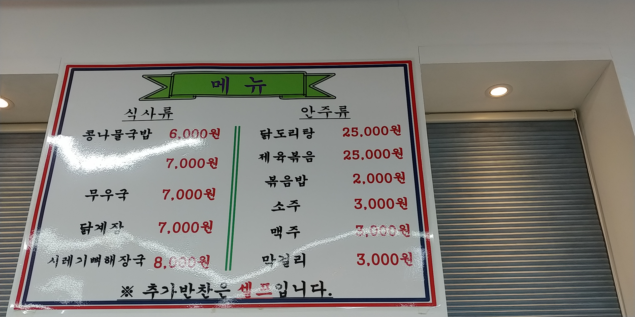 작년 메뉴판을 찾아보니 식사류가 천원씩 인상이 되었고요.