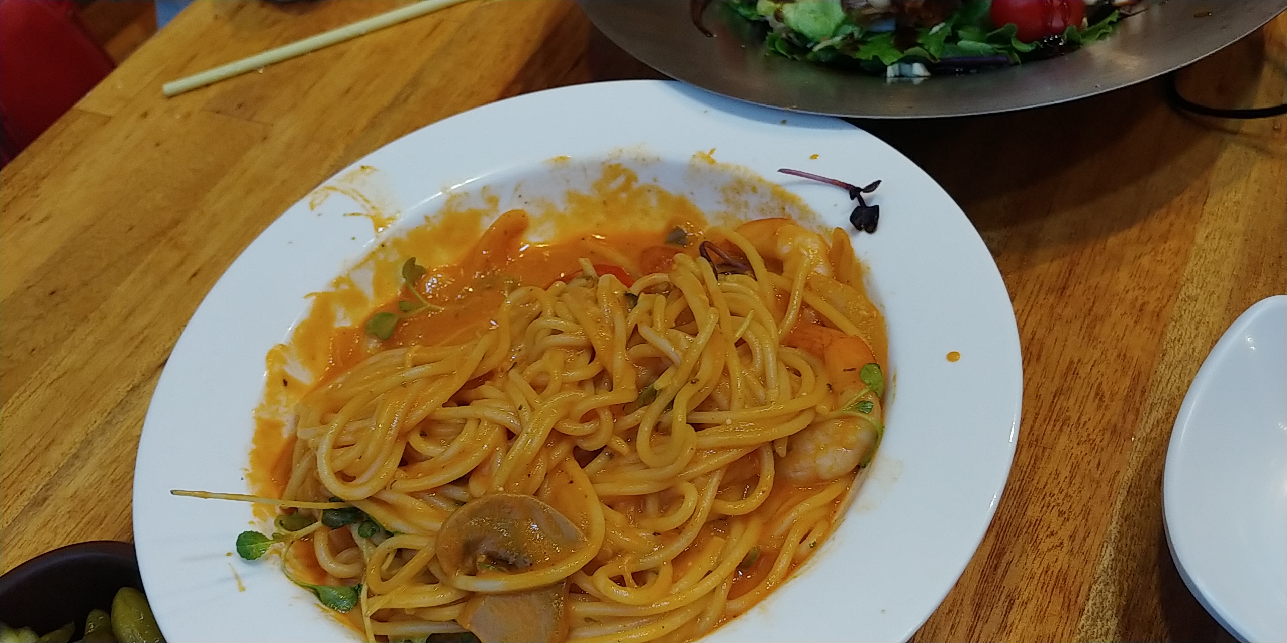 파스타11000원 그리고 새우튀김샐러드 이러면 거의 새우때문 샐러드는 거의 천원에 먹는꼴이니