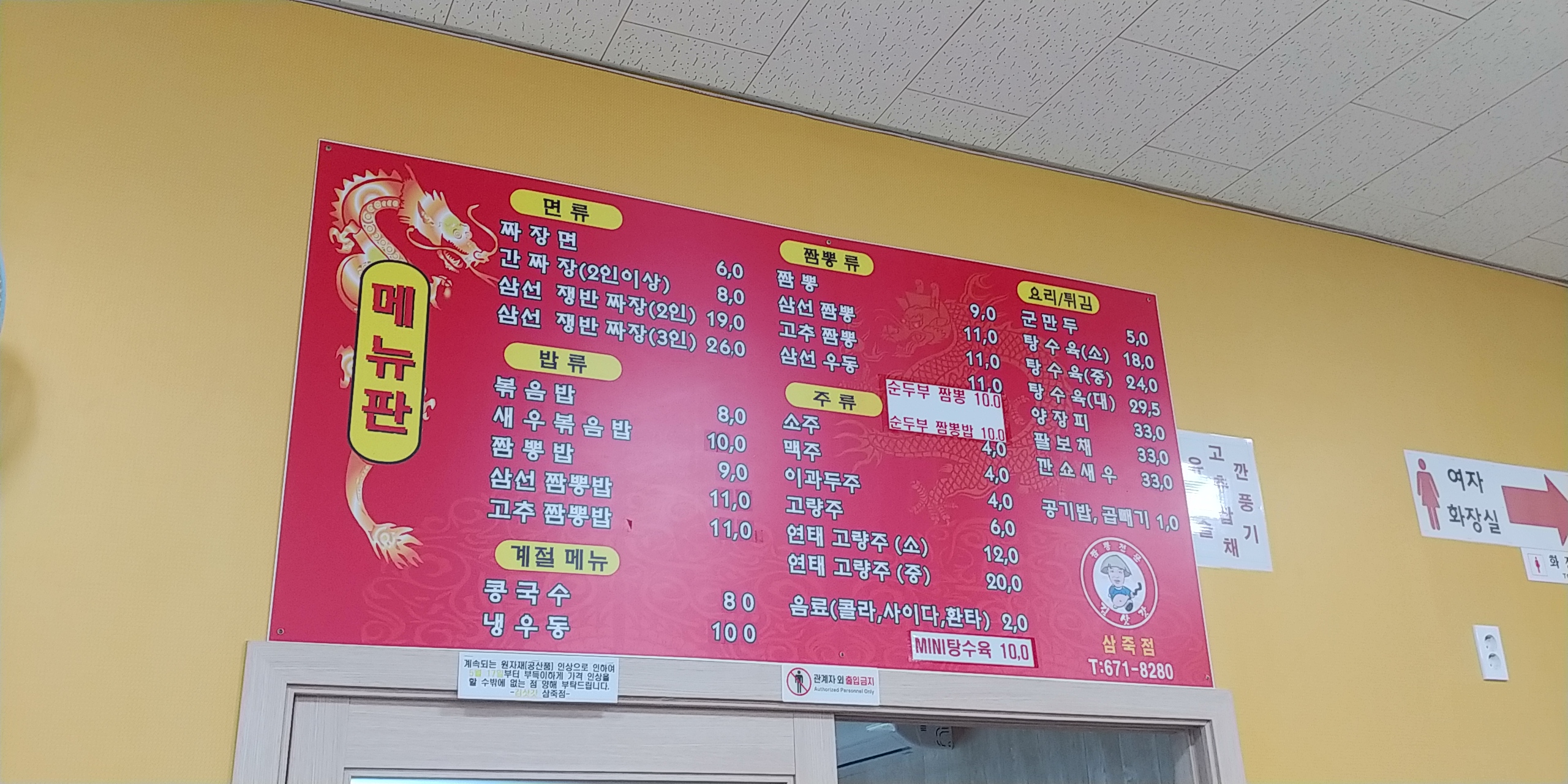 이곳은 체인점인데도 메뉴판에 된장짬뽕이 없군요.