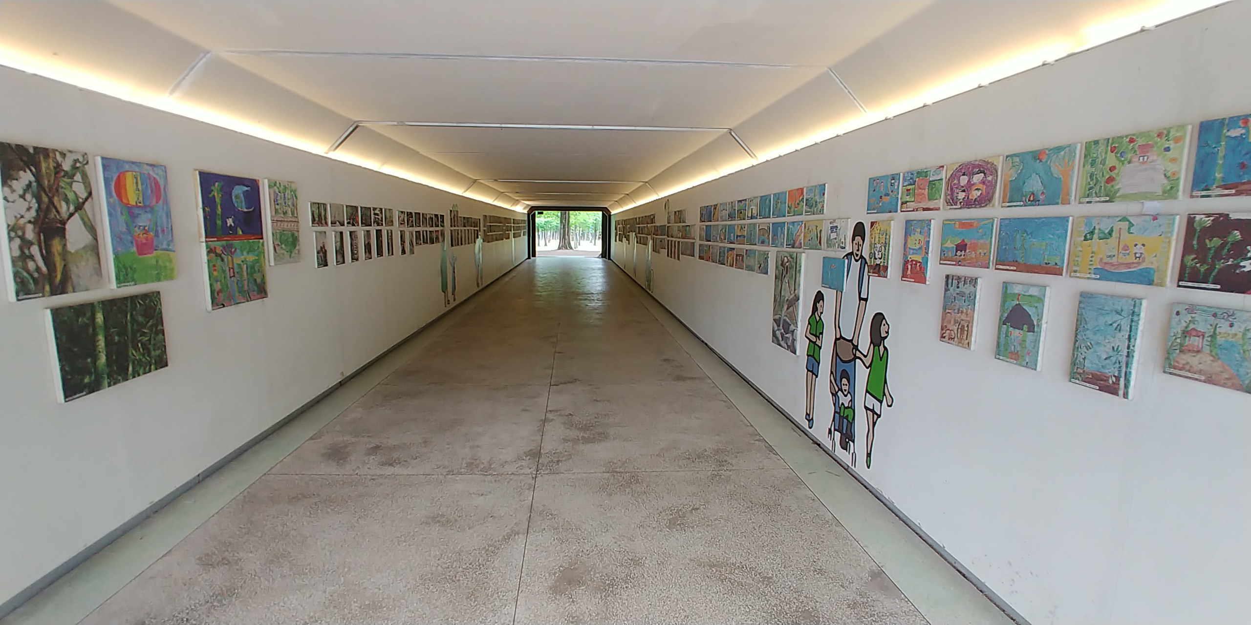 이길로 들어가면 내부 터널 옆으로 빼곡하게 전시된 어린이들이 그린 그림들이 전시되있습니다.