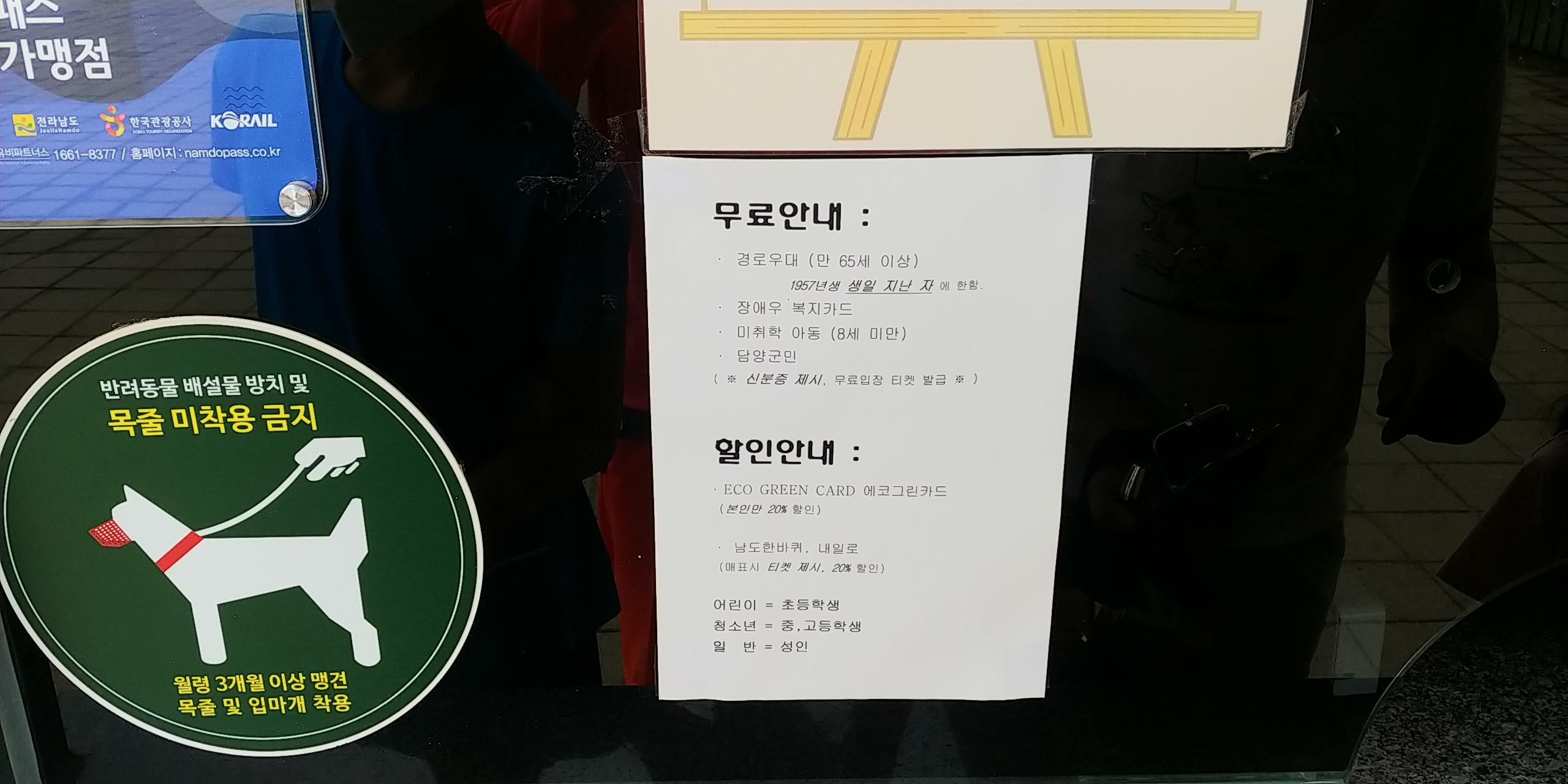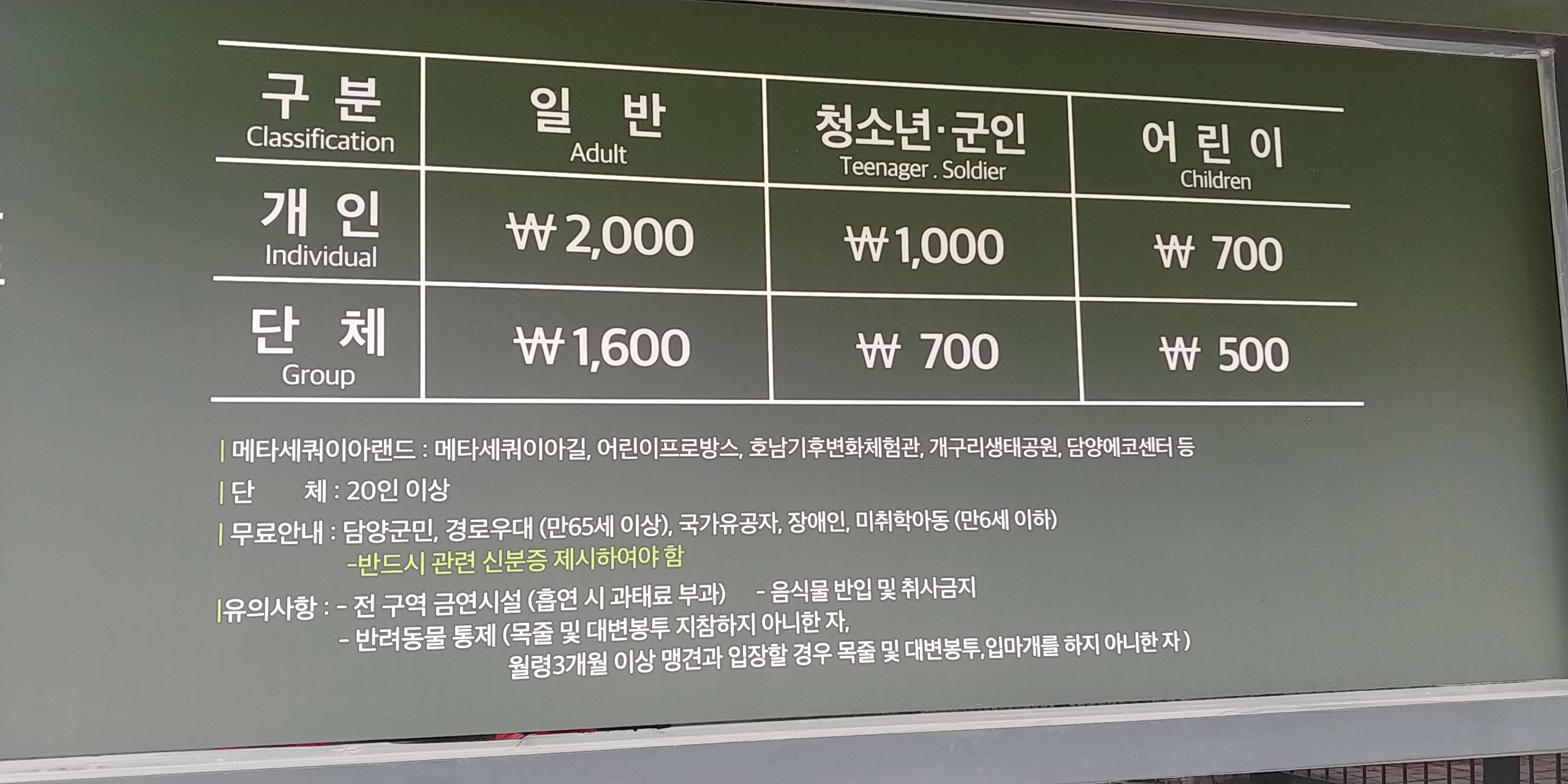 경로우대로 만65세 이상, 장애우, 미취학아동, 그리고 헉스 ...담양군민은 무료입니다.